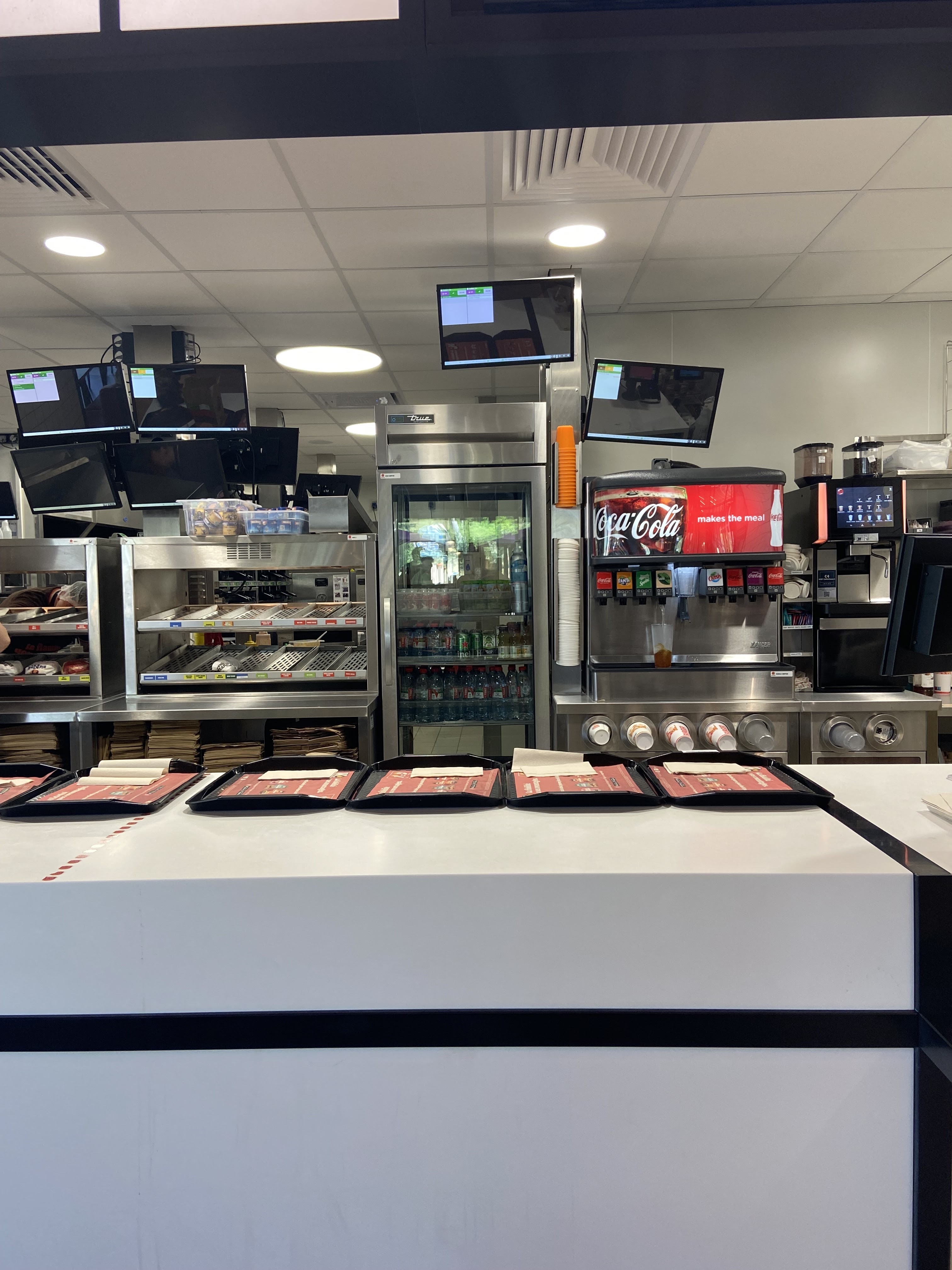 Venus pour un déjeuner à 14h45 nous avons été servi très rapidement après avoir effectué notre commande. Personnel souriant et réactif. Menus servis chaud, bien sur cela reste de la restauration rapide mais on le sait avant d'y venir. Nous avons bien mangé. En revanche, nous y avons pris des cafés qui étaient imbuvables....ils ont tous finis à la poubelle (longs, courts..) gros bémol pour les cafés.