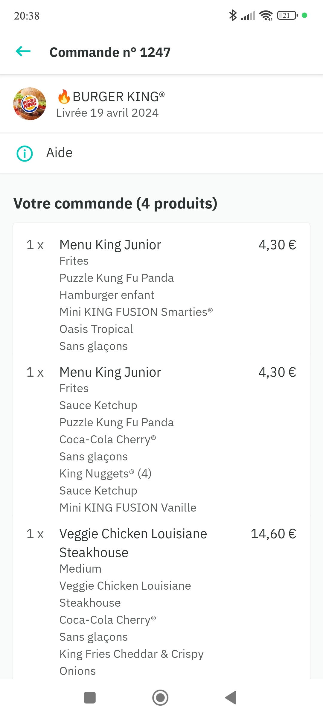 Commande Uber eats donc 3,99€ de frais tout cela pour ne pas avoir mon repas! C’est quand même incroyable qu’en 2023 ils ne sont toujours pas capables de faire une commande complète! Bref nous ne sommes pas en pleins rush, un mardi soir fin juillet! Et quand tu appelle on te dit bin écoutez moi Madame « si vous venez je vous fais votre hamburger » bin oui bien sûr je viens de payer presque 4€ de frais et je vais me déplacer! Bref j’ai mangé des frites! Merci Burger King pour votre professionnalisme et votre compétence 👏👏👏👏