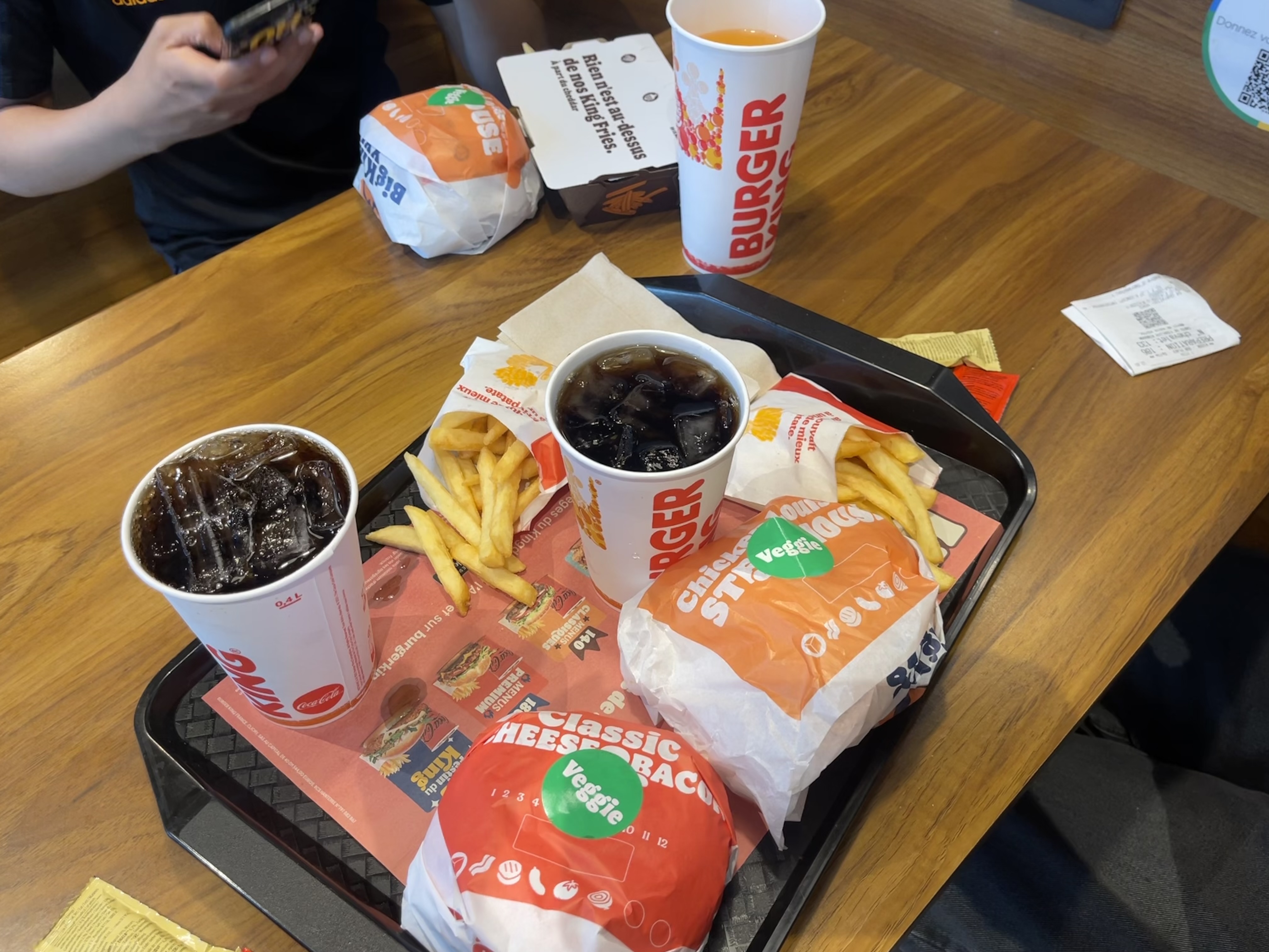 Arrivé en début de service vers 11h15, les frites sont excellentes et bien chaudes! 👌 Cela fait plusieurs fois que je mange au burger king et il y à une grande variété de burger veggie et tout comme leurs frites ils sont excellent !