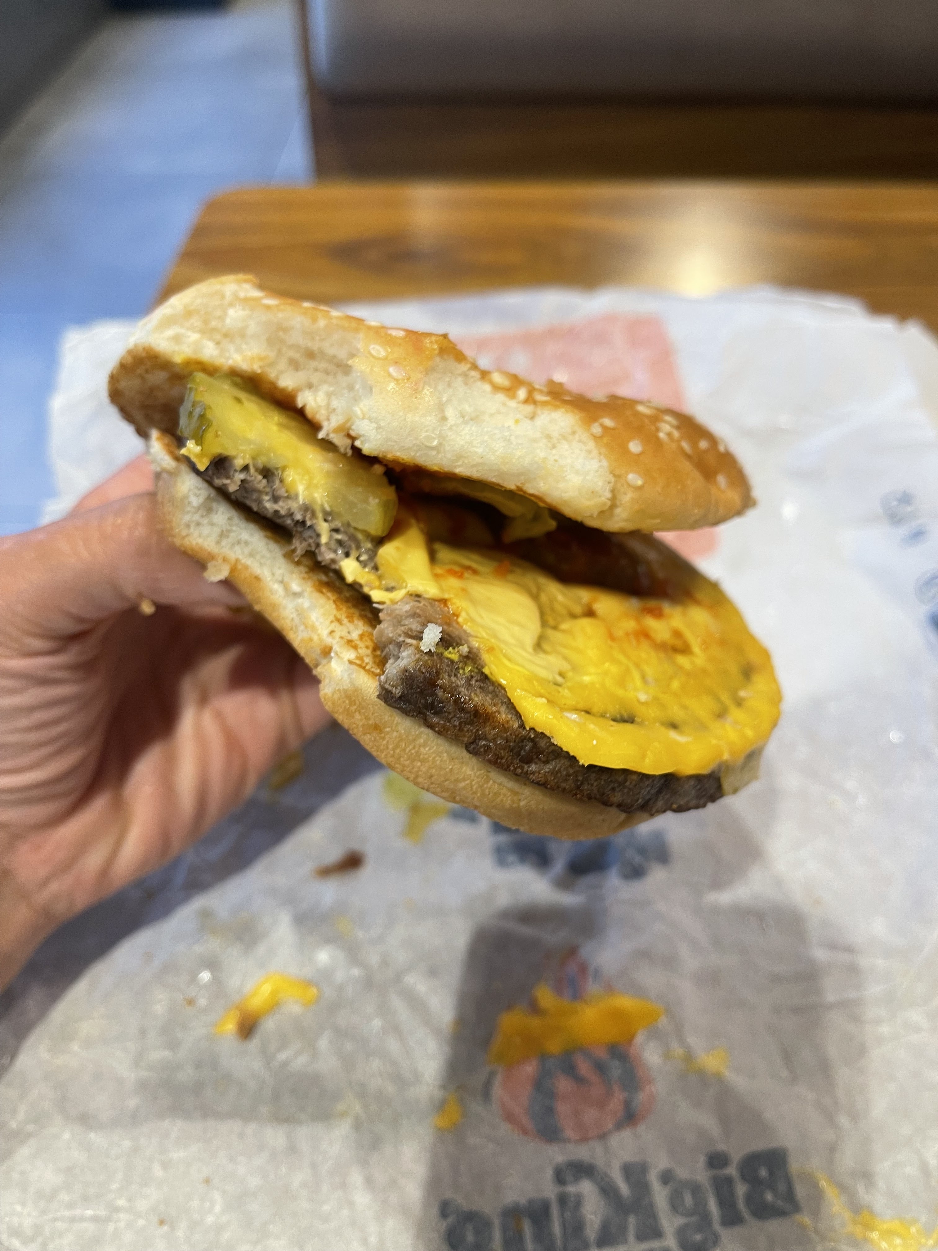 Bonjour, j'avais laissé un précédent avis très négatif que j'ai décidé de rectifier. Je remercie vraiment Mathilde qui a été très sympa pour son accueil et en plus elle a été très commerçante. Le double Whopper Cheese avec du fromage était très bon 😜. Je reviendrai 😁.