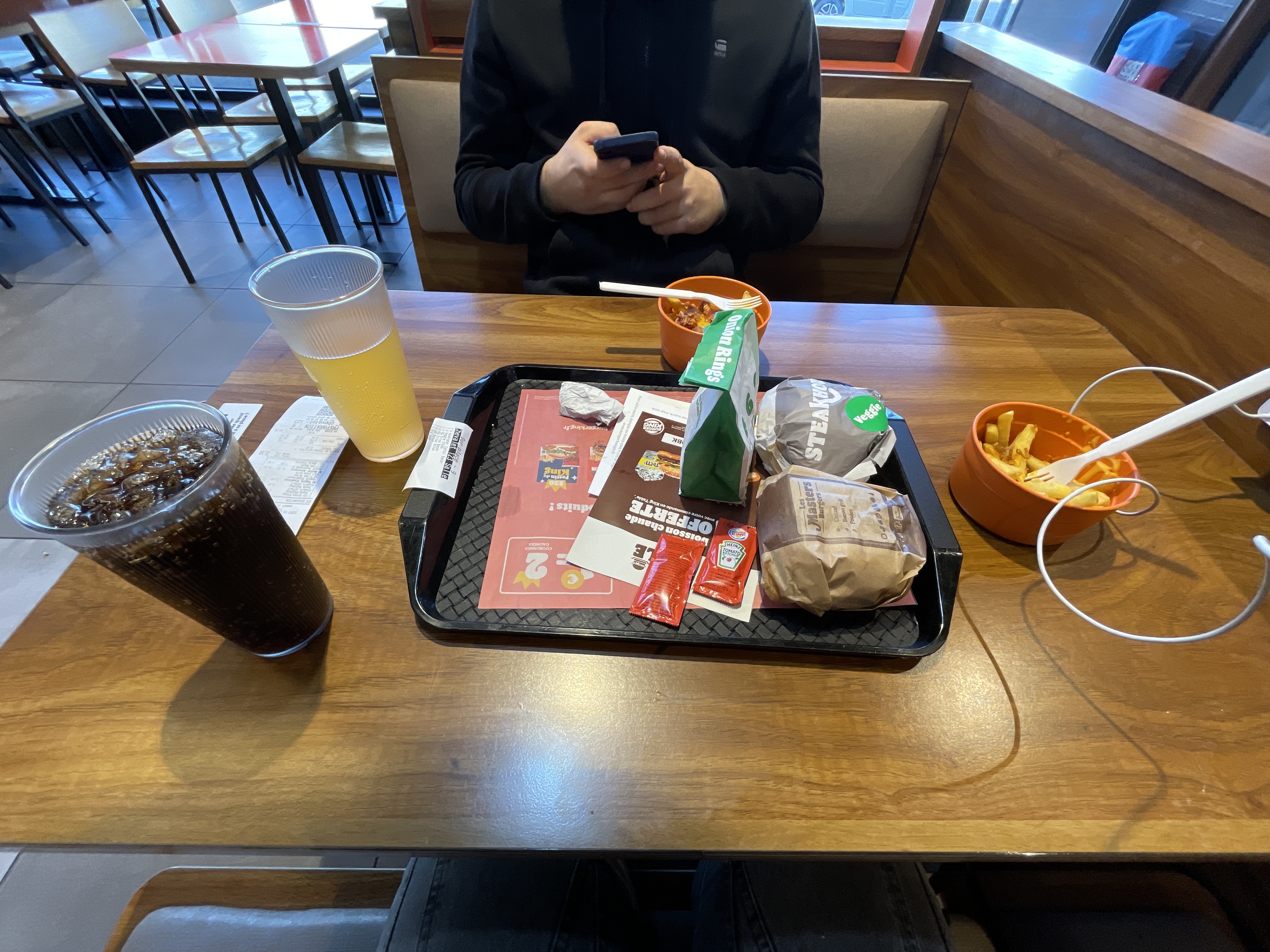Bonsoir malgré les 1h15 attente hier soir et un manager perché dans la lune et avec les bornes éteinte a cause du manque d’organisation ce soir j’ai retrouvé le sourire toujours fidèle à Bk :)