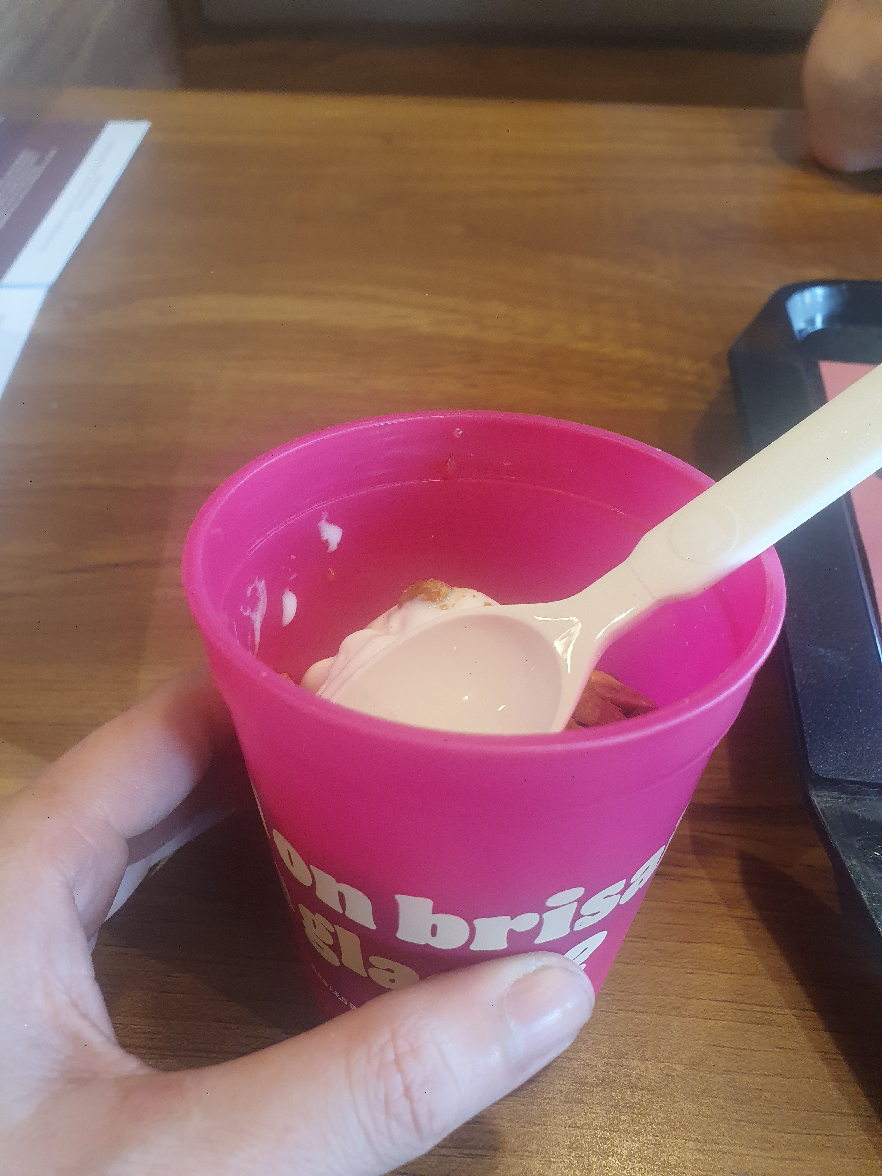 Je mange ma glace et je me suis fait mal à la dent avec un bout de plastique qui se trouvait à l’intérieur ! Je ne trouve cela normal, si c’était un enfant qui le mangeais ou si je l’avais pas senti, j’aurai pu me faire mal ! Je ne commanderai plus de glace dans ce restaurant si c’est pour m’étouffer avec du plastique. Je ne vous remercie pour cette glace désagréable. Je ne vous pas Nn plus a bientôt.