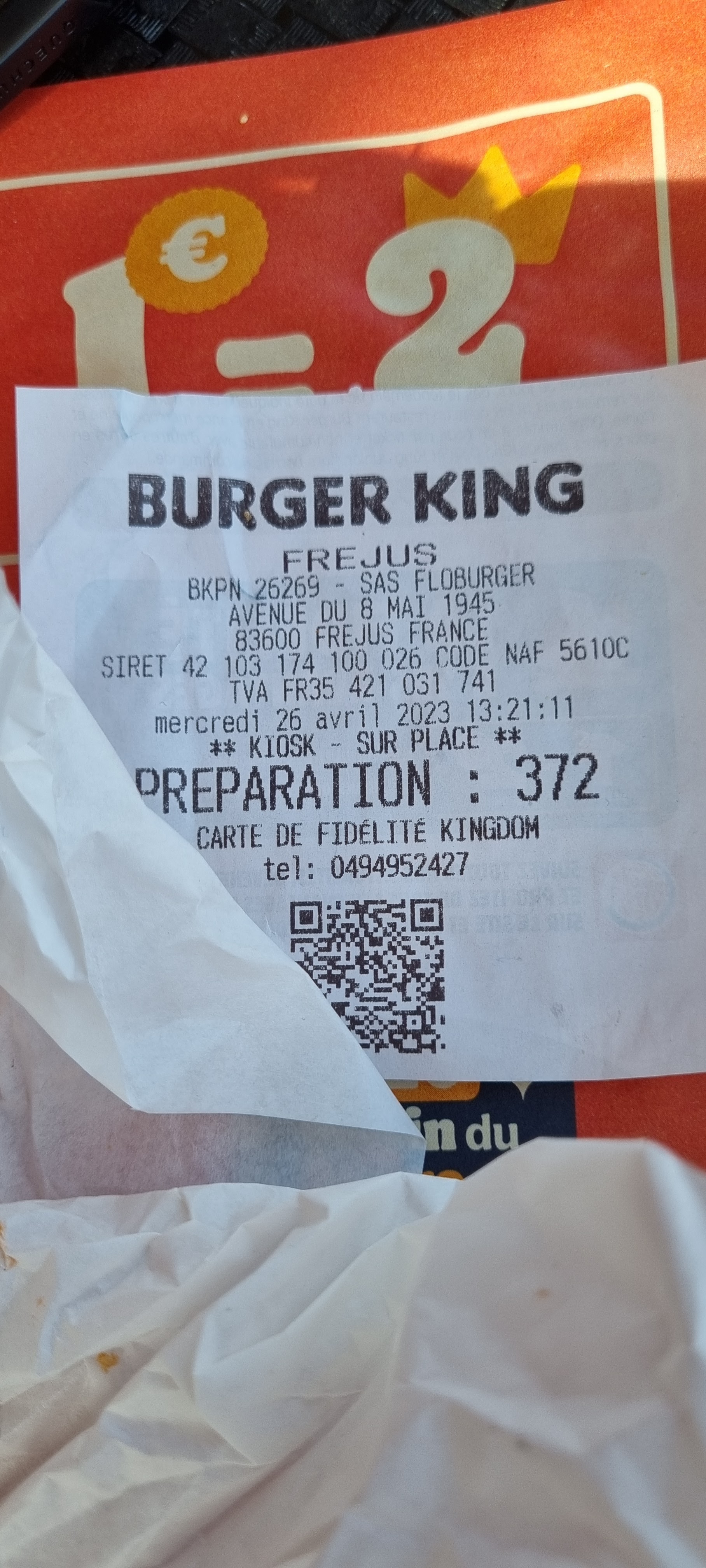 Bonjour, j’ai passé ce jour via uber une commande et pour être honnête, je travaille moi-même dans la restauration. Compte tenu des nombreux problèmes sur cette livraison (délai, alors que j’avais payé un supplément pour être livré rapidement, température de tous les produits chauds, glaces fondues, absence de produits, erreur de produit) je n’aurais certainement pas agit comme uber en terme de réaction ! Je considère en effet que les 6,16€ qu’ils me proposent généreusement est un dédommagement sinon insuffisant, en tout cas très mesquin. Comme je vous le disais, travaillant dans la restauration, je suis indulgent sur les erreurs, problème, retards et rush que nous pouvons rencontrer. Là où je suis intraitable, c’est sur la façon de gérer les crises en se défaussant de ses responsabilités, et en provoqut inévitablement la frustration et le mécontentement des clients. Dont acte. PS : je joins cet avis, sans avoir encore eu le retour du restaurant lui-même, et de la façon dont il va traiter ces incidents. Je ne manquerai pas de modifier mon post le cas échéant. En attendant, pour ma part, et pour ce que valent mes conseils, je ne ferai plus appel ni à Uber ni à Burger King Frejus. 🤔‼️ PS2 : j’ai reçu la réponse du restaurant qui ne prend pas ses responsabilités sur les produits manquants. Il me demande de m’adresser à Uber( ben voyons !) et me promettent de « m’épater la prochaine fois » 😂 Quelle prochaine fois les gars ?? Affligeant!!! je confirme donc tout ce que j’ai dit avant et j’enlève une étoile. FUYEZ !