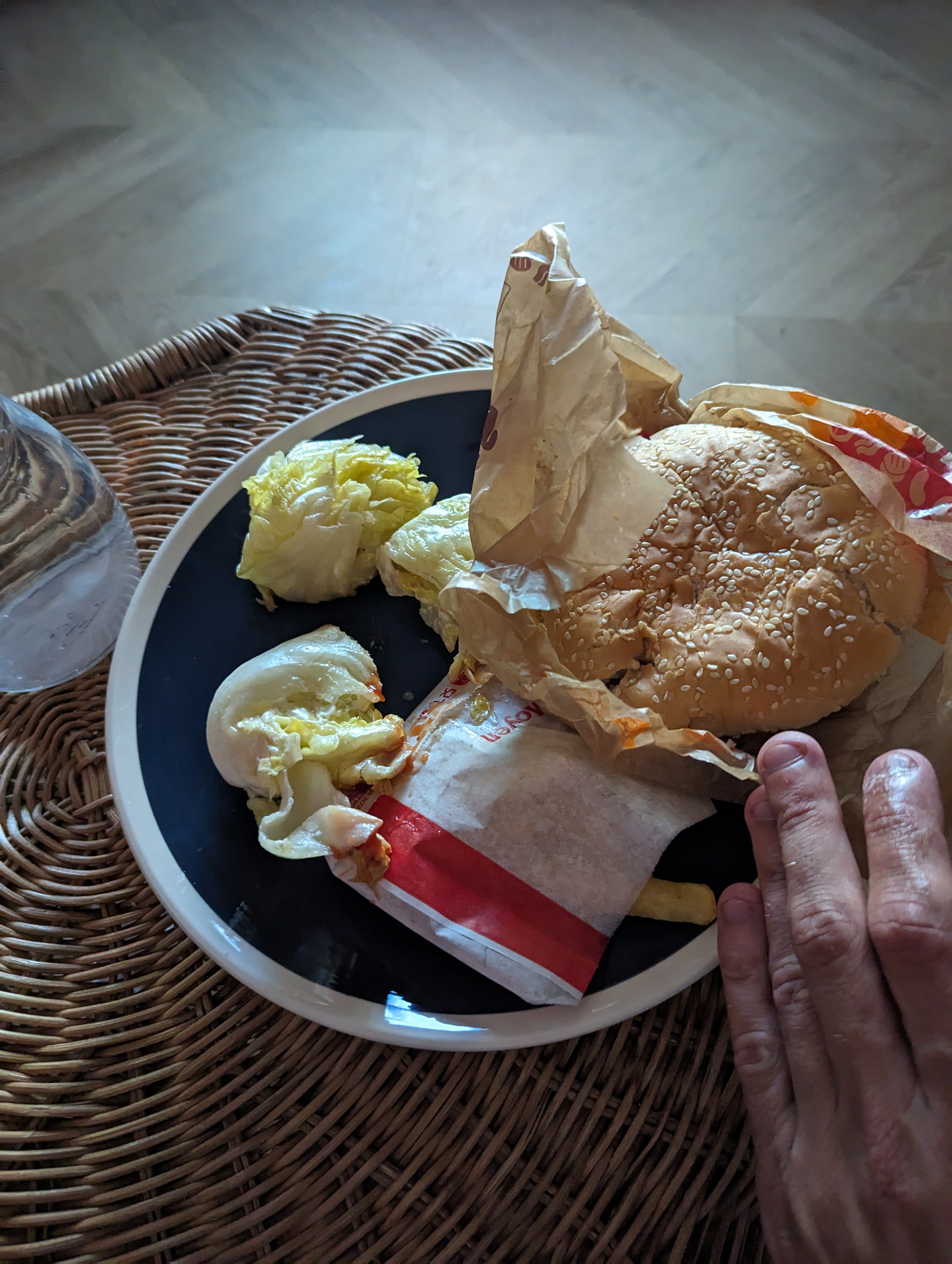Cela fait deux commandes ubereats où il manque des articles. Et voici l'état de mon cheeseburger. Pas cool.