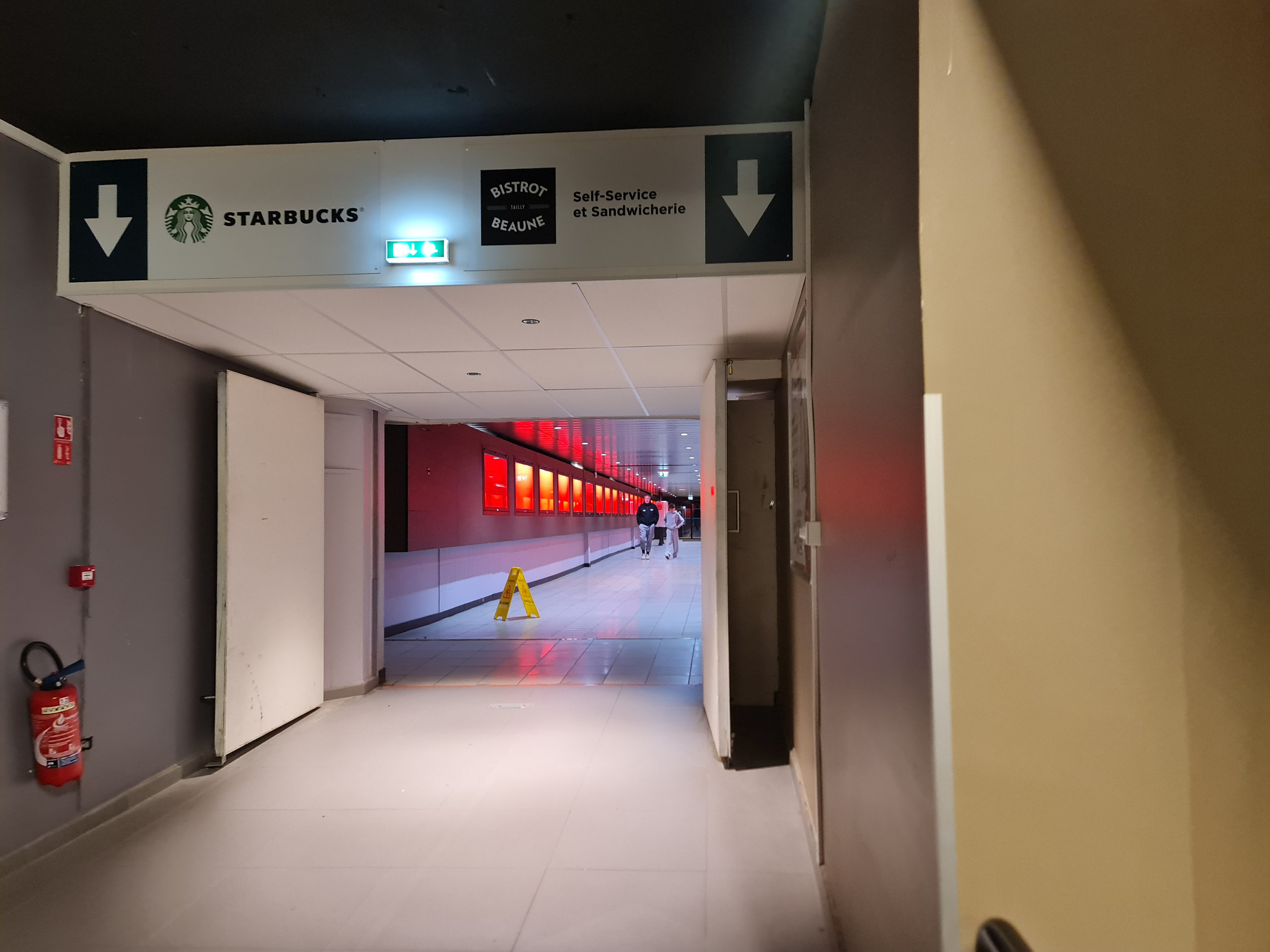 Inaccessible via la passerelle alors que marqué accessible.(panneau qui précise que Exki et BK sont accessibles via la passerelle) On se retrouve face à un chantier ouvert et plusieurs familles se sont essayés et se sont retrouvées en plein milieu d'un chantier non sécurisé...