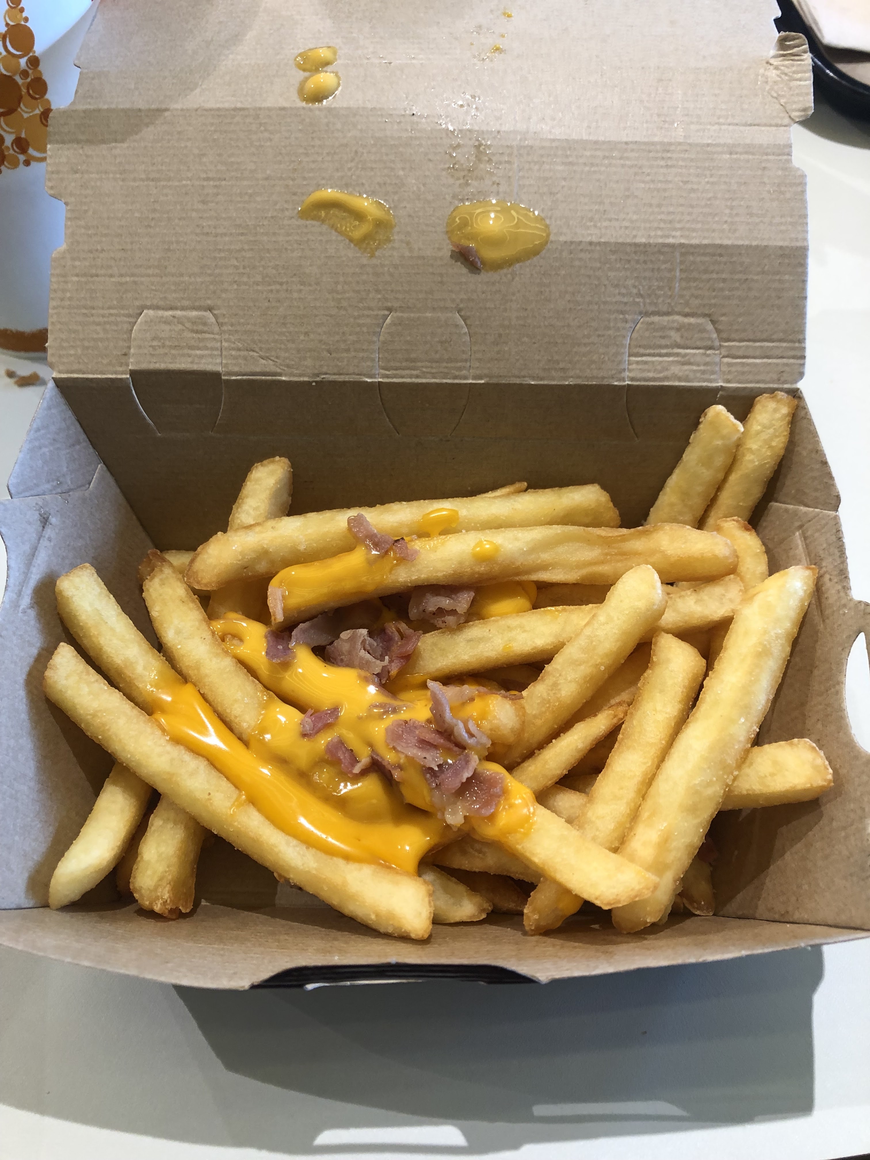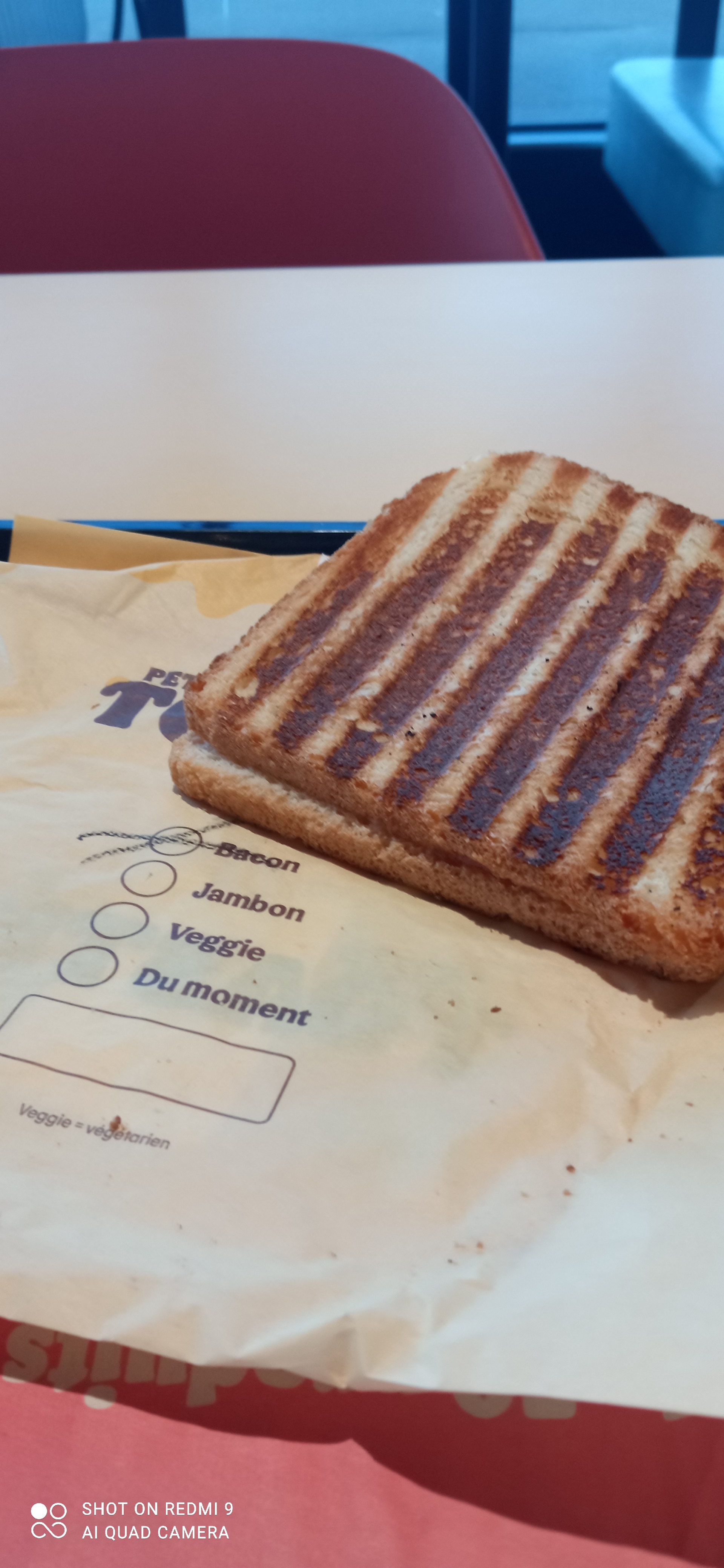 Comme d'habitude le rendu quant on est sur place et loin d'être le même qu'à la télévision ou sur les pubs . Par contre le restaurant en lui même, propre et personnel agréable.J ai pris le petit toasté bacon avec un verre de fanta sans glace.