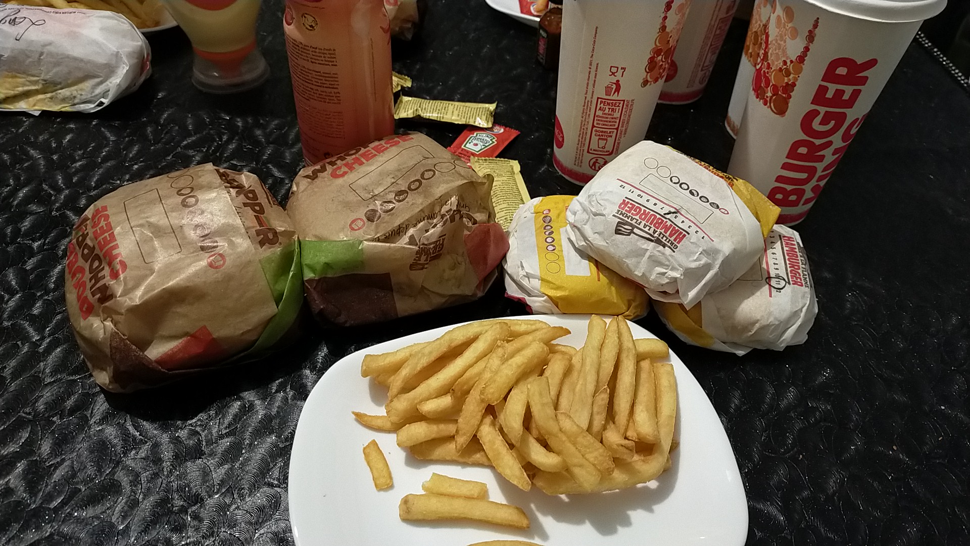J'ai commandé sur uber eats et j'ai reçu ma glace avait déjà fondu, les hamburgers trop secs, le wrap non parlant pas. Le big King en dirait un cheese burger qui est dans le menu enfant. C'est la dernière fois que je me fais livrer burger king à la maison.
