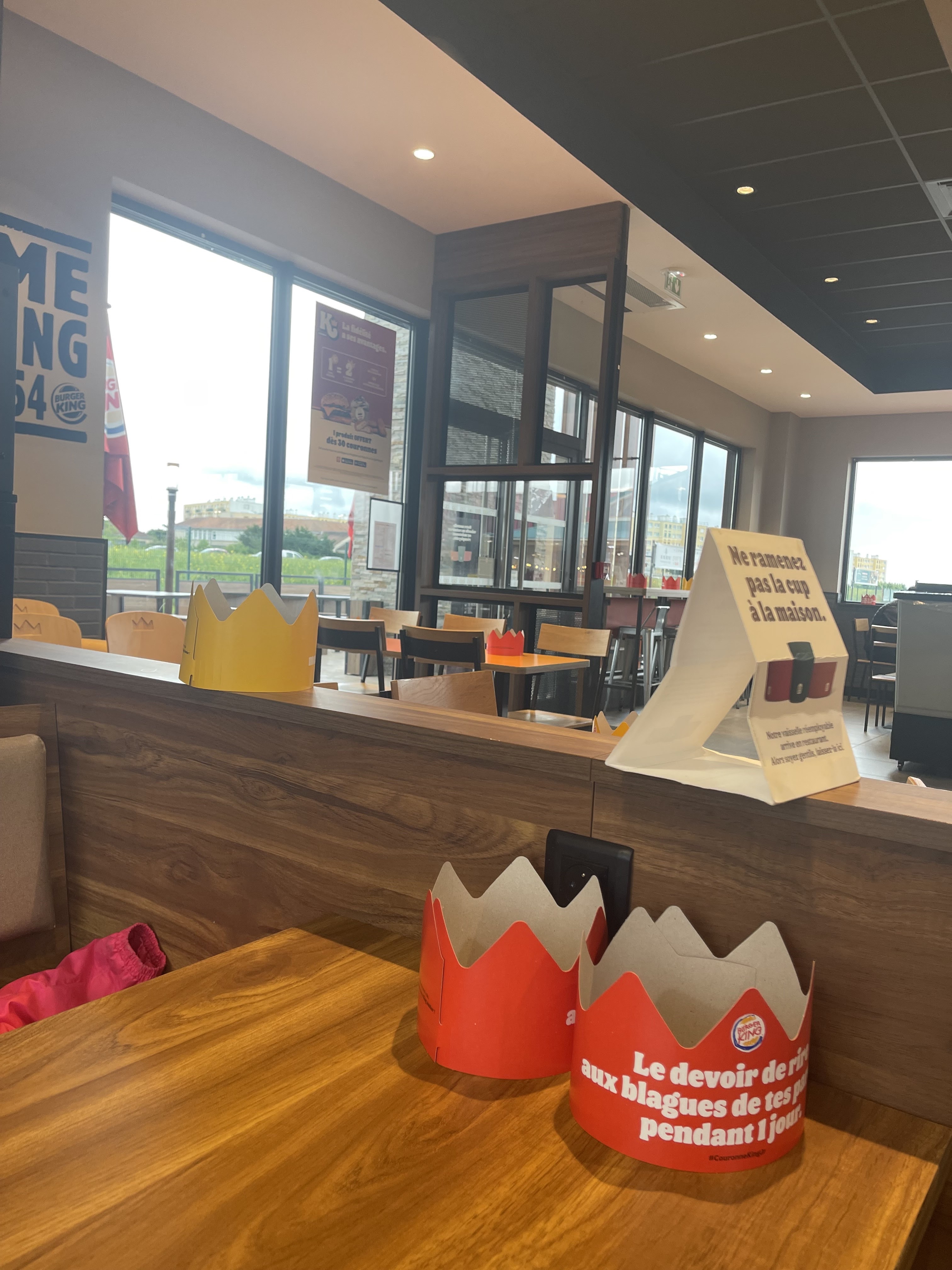 Burger king restera supérieur à d'autres fast good, par contre l'hygiène est à revoir. Obligé de demander du produit pour nettoyer nos assises, les tables étaient propres mais pour le reste entre les assises, les sols et emplacements pour vider les plateaux c'est lamentable. Pourtant, il y avait 2 responsables en terrasse qui faisaient des entretiens à leur personnel, mais personne ne s'est posé la question de pourquoi nous étions en train de nettoyer nos chaises... J'aimerais bien savoir pourquoi lors de la commande sur place on nous indique que l'on va avoir de la vaisselle réutilisable, alors qu'en pratique on a des gobelets en carton... Vive l'écologie !!!