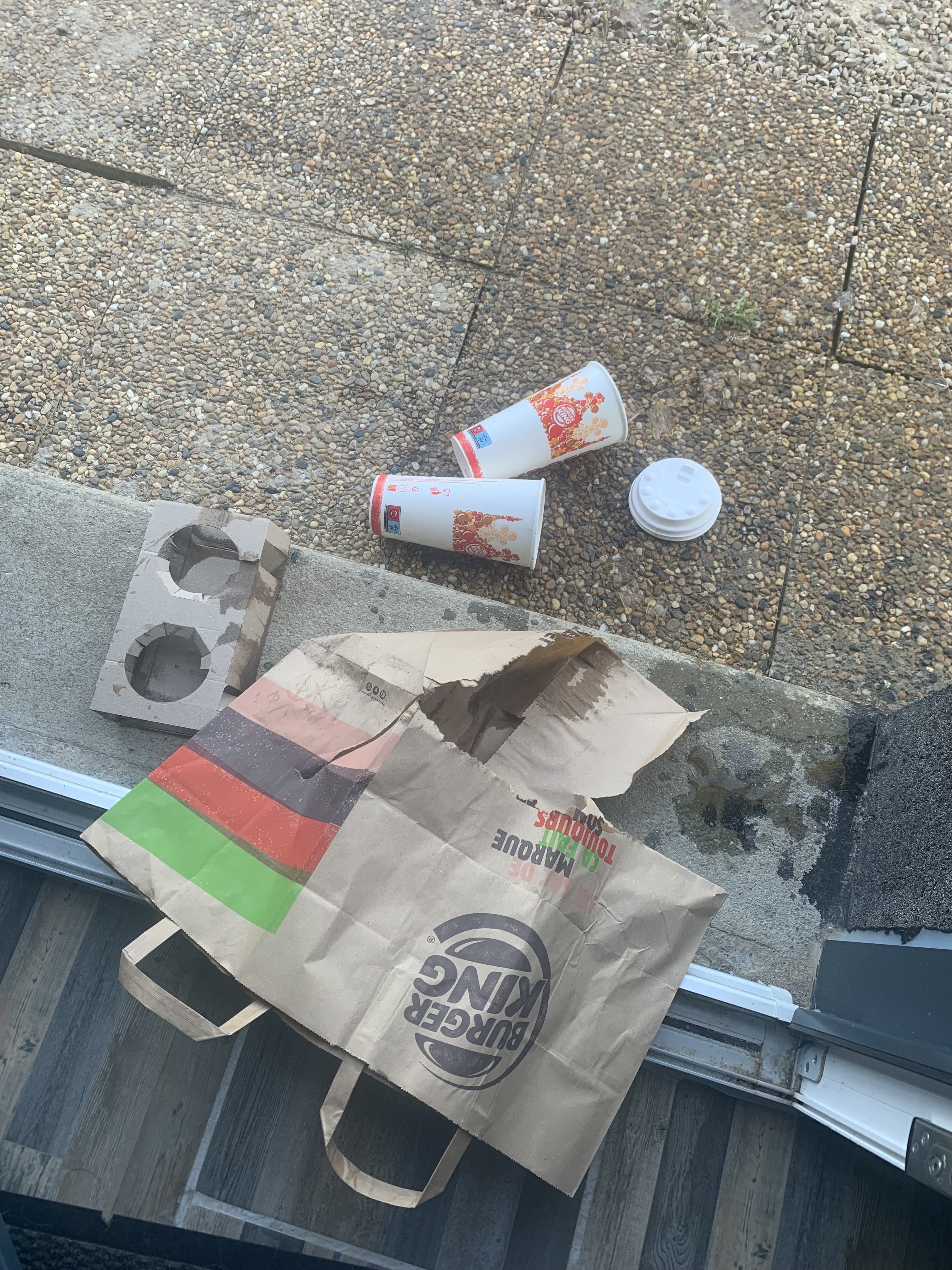 A emporter c’est juste pas possible, les gobelets ne tiennent pas fermés et même en roulant tout doucement à les tenir voilà le résultat ! Plus jamais de drive chez burger king. Payer 50 balles pour rien merci bien.