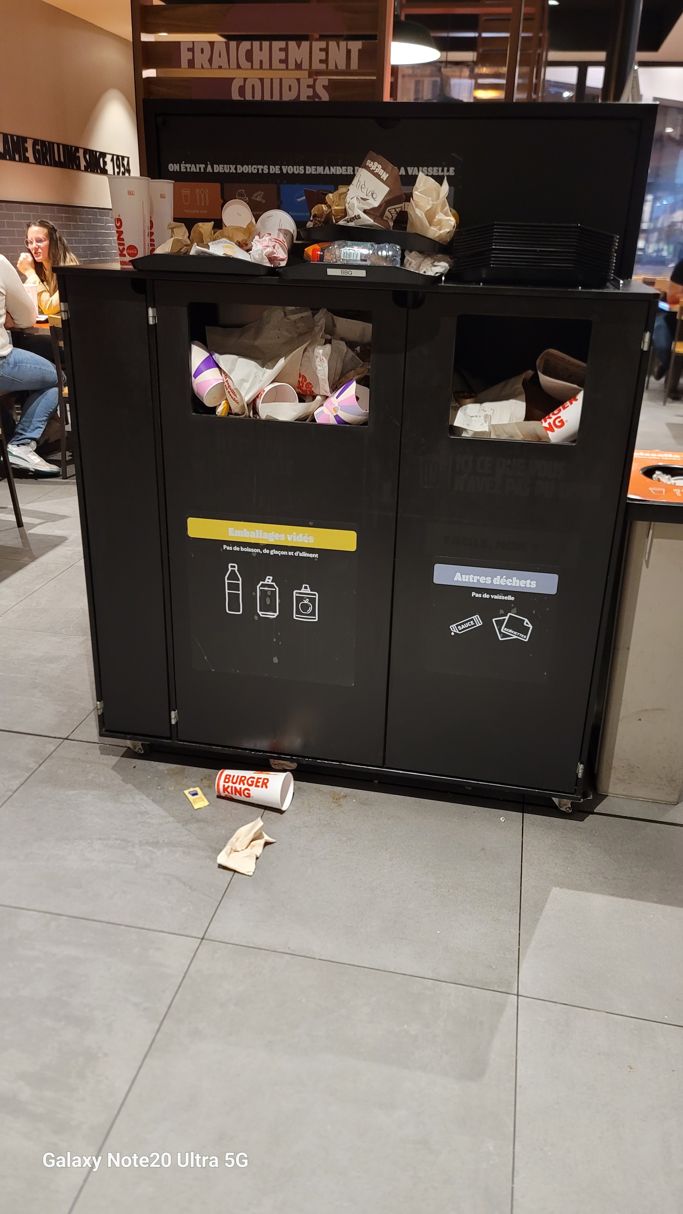 État de la propreté des lieux immondes. Rien de plus a rajouter. Les poubelles ne mange pas les plateaux mais l'impression qu'elles n'ont plus de place pour rien avaler ! Fermeture du drive a 21h38 😂 noté : 11h - 23h Bref a fuir