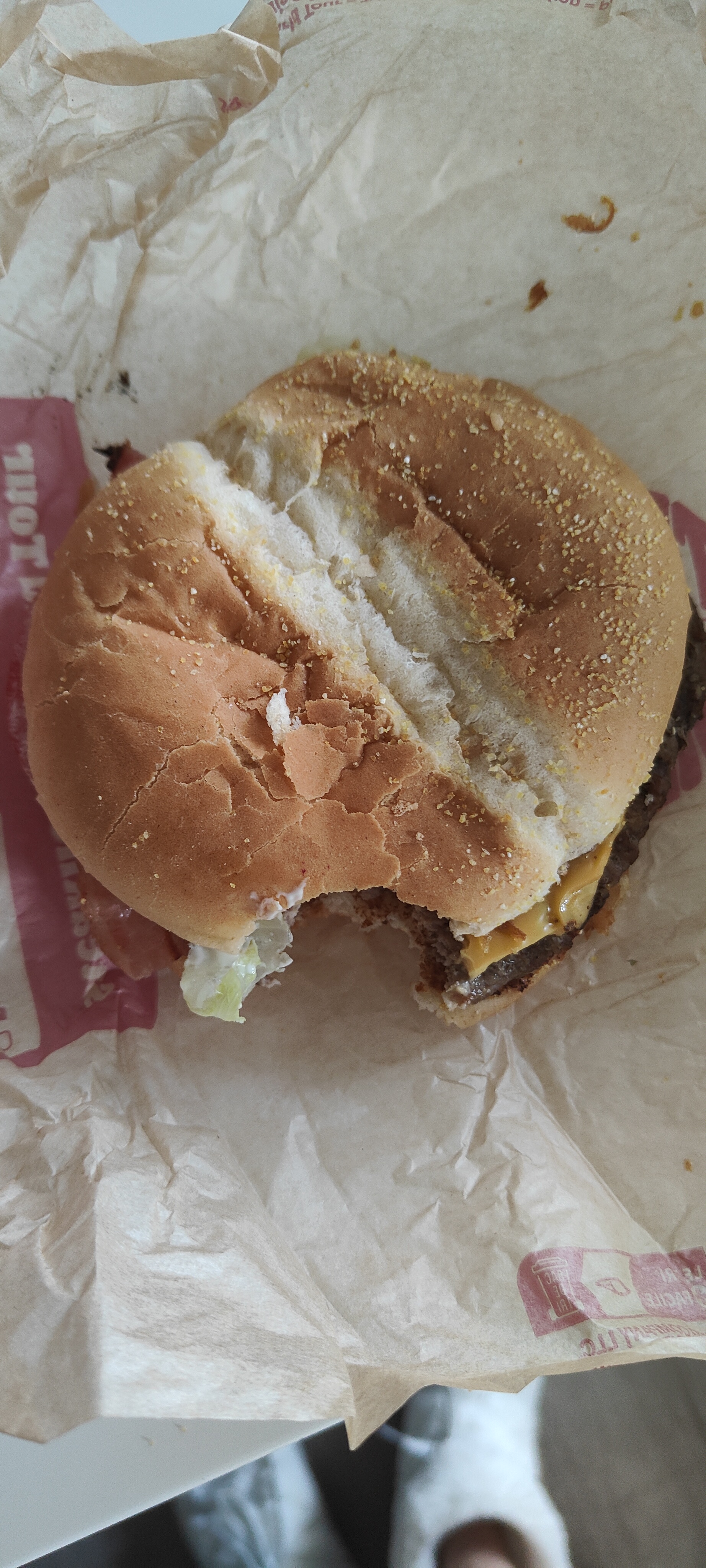 Une prise de commande normal mais à l ouverture des frites une grosse surprise, un capuchon de je ne sais quoi au milieu des frites, c est degeulasse excusez moi du terme, et aussi un double bacon qui se retrouve avec une seule viande, j ai pas encore finit de manger je vais peut être en rajouter un avant la fin