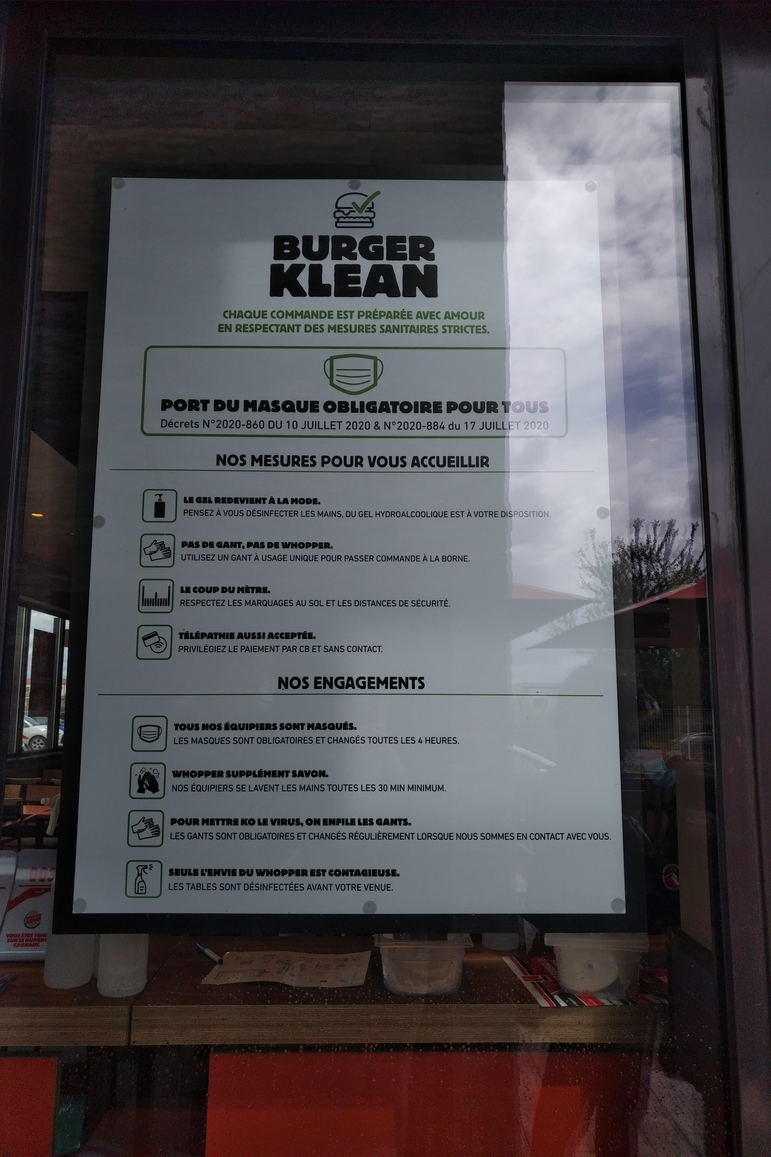 12/02/22: C'est la troisième fois que nous sommes allés à Burger King, l'attente était nettement moins long. J'en ai profité pour tester leur burger veggie avec les frites aux oignons et les oignons rings. Mai/2021 : C'est la deuxième fois que j'y vais avec mon conjoint. C'est dommage que les délais sont aussi longue. Les wraps aux fromage de chèvre sont très bon quand ils sont bien fait. Ils y a des panneaux autours des bornes de commandes. Le nombre de personnes à l'intérieur est respecté. Les emplacements pour attendre sont clairement identifiés. Pour l'instant il n'est pas possible de manger à l'intérieur mais vous pouvez manger à l'extérieur ou à emporter.