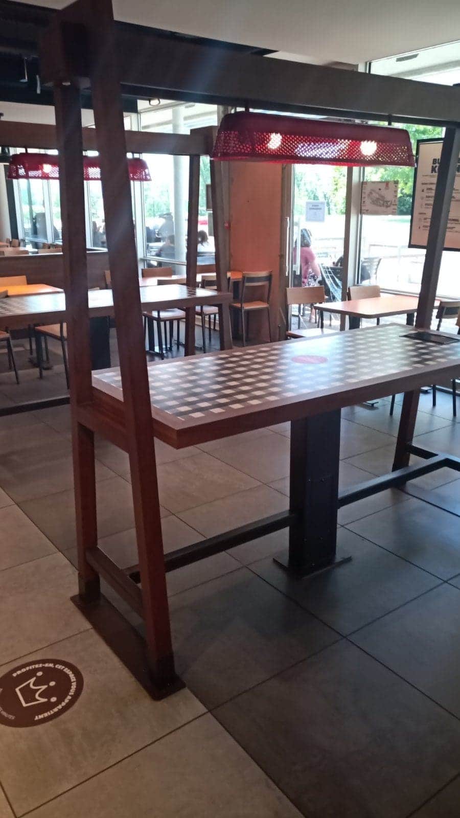 De pire en pire , et pourtant si bien au début... des oublis , Burger et frites froides, tjrs les gobelets papiers... aujourd'hui on aura tout eu, jusqu'au table sales alors qu'il y a peu de monde...