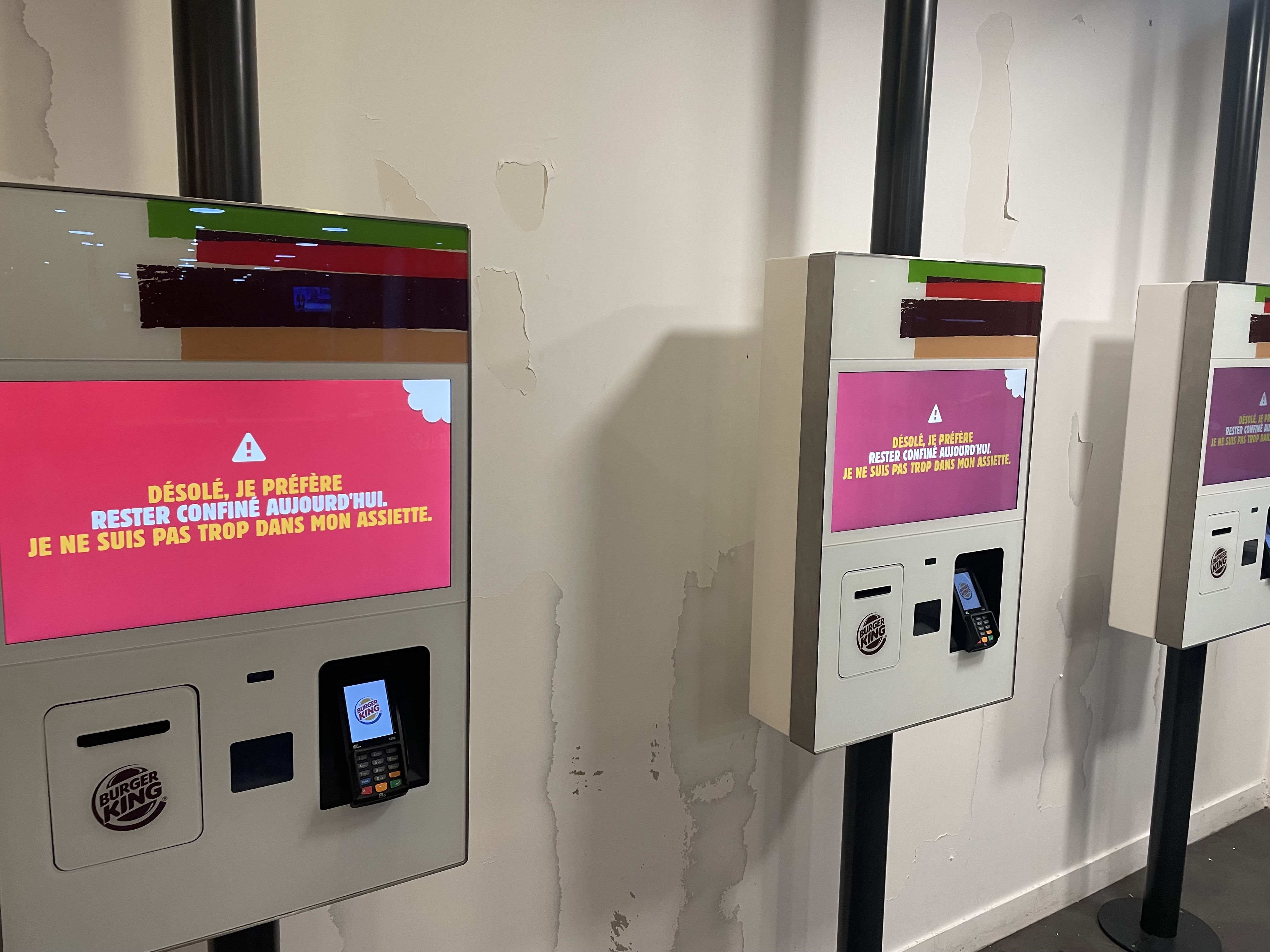 Passé un vendredi soir de retour en vacances à 20h30. Pas de frites; zone de restauration intérieure fermée; uniquement deux bornes sur cinq dispos pour commander donc sympathique temps d attente...on peut dire que ce burger King ne se démarque pas des autres positivement...