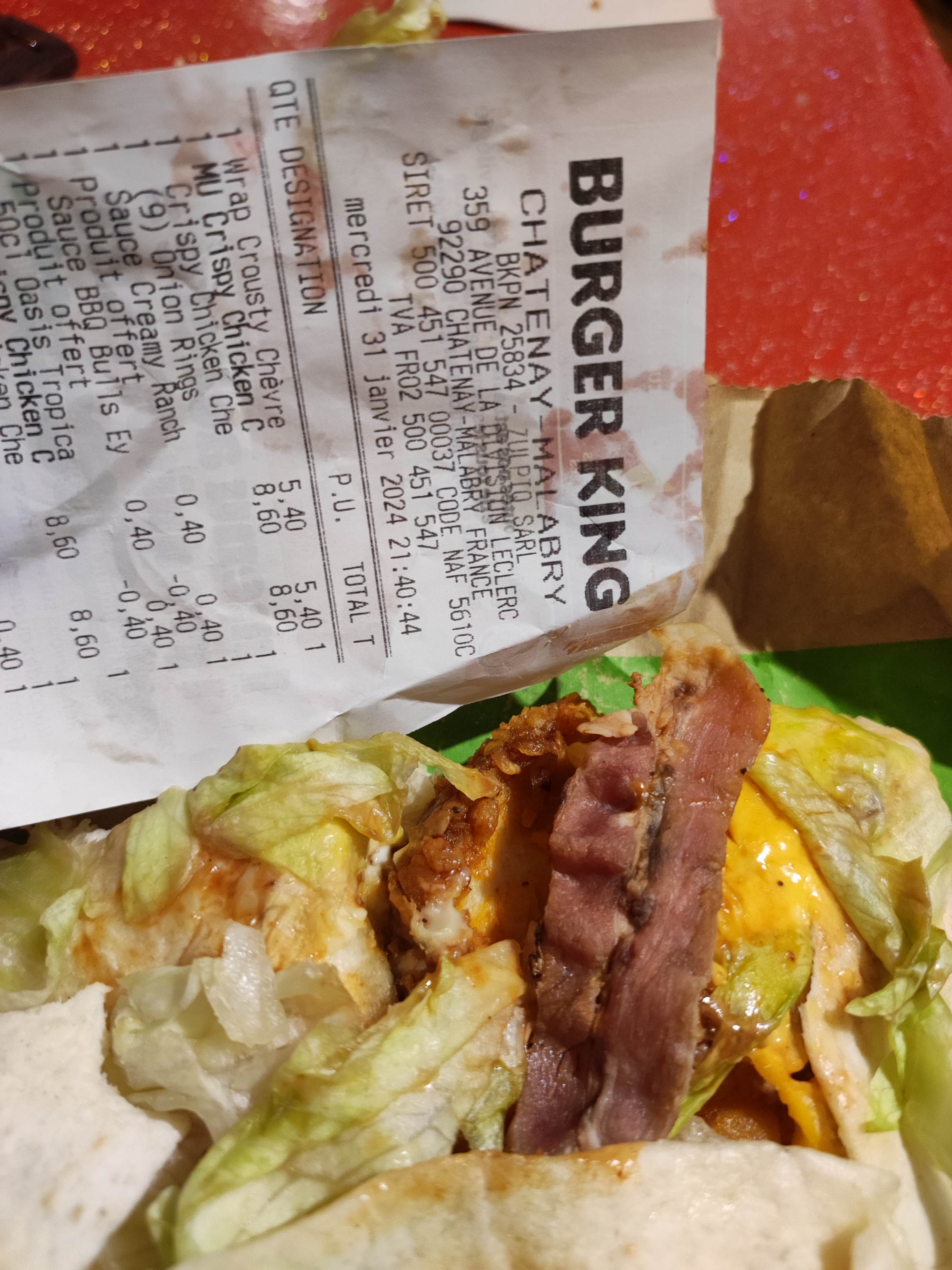 Je ne sais pas comment je pourrais me permettre de revenir à cette branche de BK quand un des équipiers me jette des mouchoirs devant moi (dans le sens irrespectueux de jeter) quand je tend la main gentiment pour les prendre, juste parce qu'il n'y avait pas de mouchoirs dans mon plateau. Franchement, les gens en 2023... je ne sais plus ce qu'il se passe dans leur tête. Je suis quoi, un être inférieur pour ce gars ?