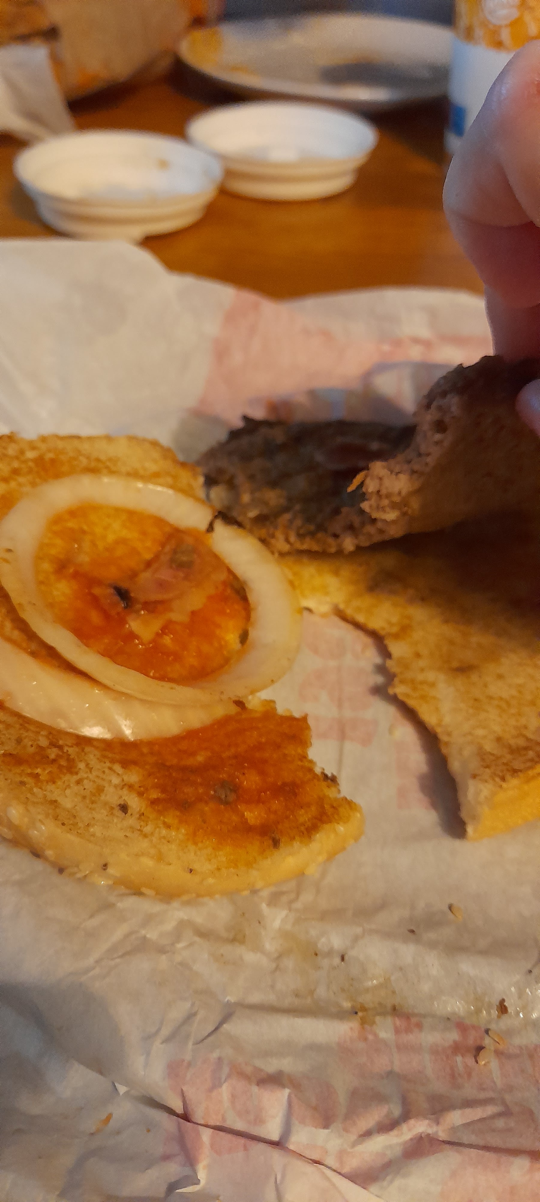 Je n'ai pas l'habitude de laisser des avis mais là c'était mérité. On dirait que tout a été réchauffé au micro-ondes. La nourriture n'est vraiment, vraiment pas bonne. Même le coca que j'ai pris a juste le goût de l'eau.. la glace s'est renversée dans le sac et il ne restait pratiquement plus rien qui au passage n'a pas de saveur... Honnêtement je préfère BK de base mais à ce stade passez plutôt à McDo qu'à ce BK. Le seul point positif : le livreur hyper sympa et rapide. Heureusement que je n'ai pas payé trop cher même si les frais de livraison à 3€ bon 🤡