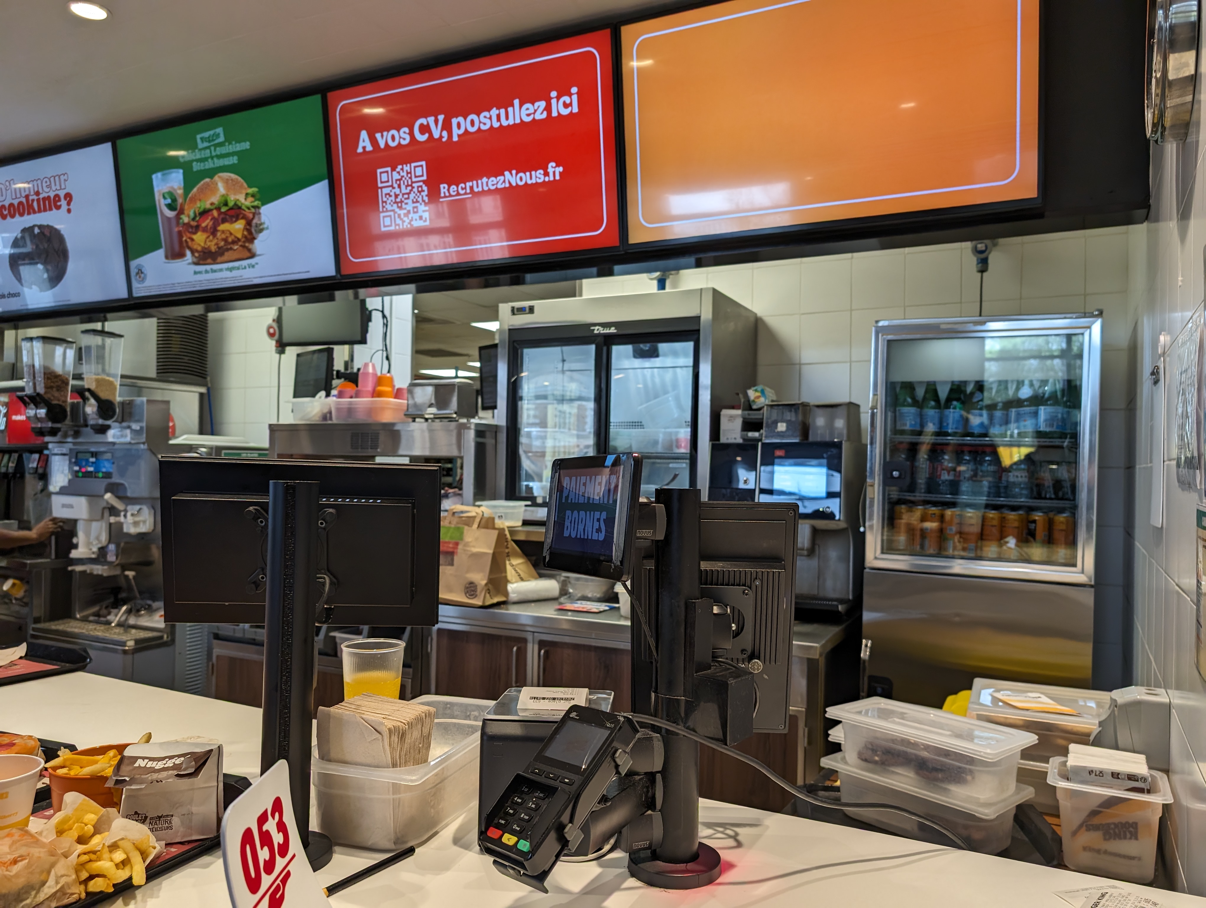 Que dire... lorsqu'on se rend dans un fast food, ce n'est pas pour la food, mais pour le fast. Ici, à 13h, c'est 55 minutes d'attente pour être servi : voilà 20 minutes que j'ai terminé ma ration et que je regarde mon binôme s'impatienter.