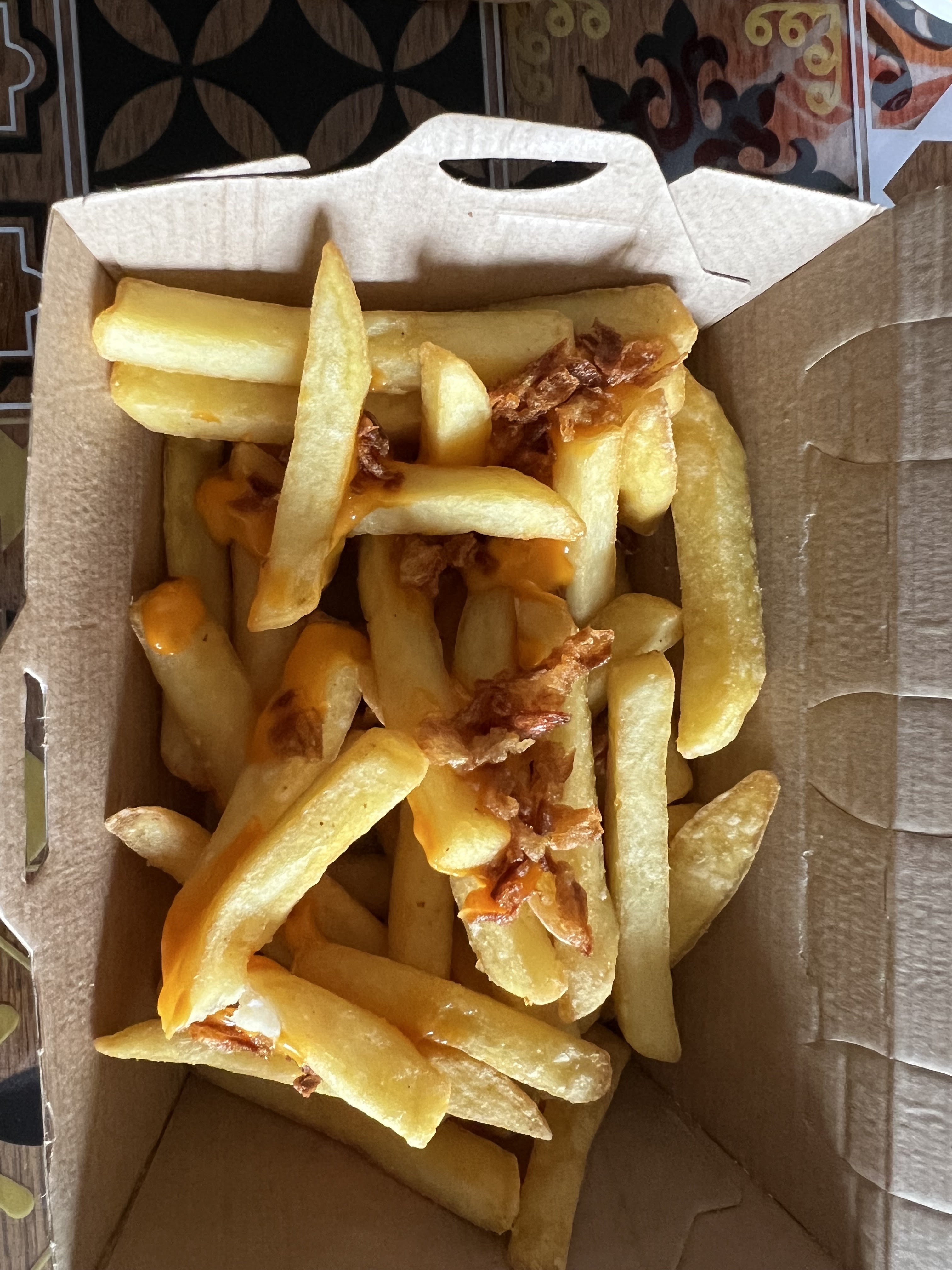 J'adore le principe frites 😋 au fromage oignons frits et les burgers.