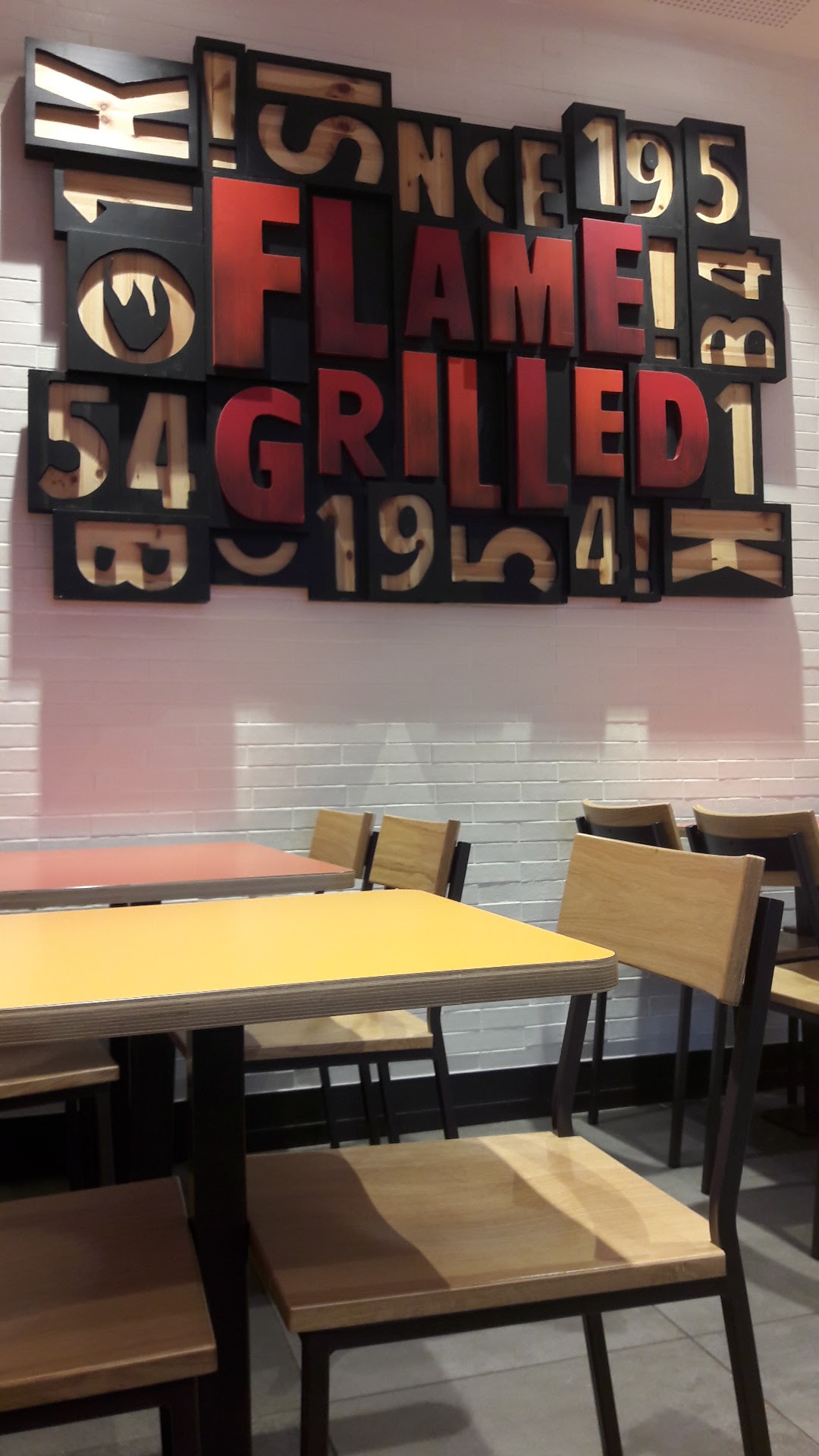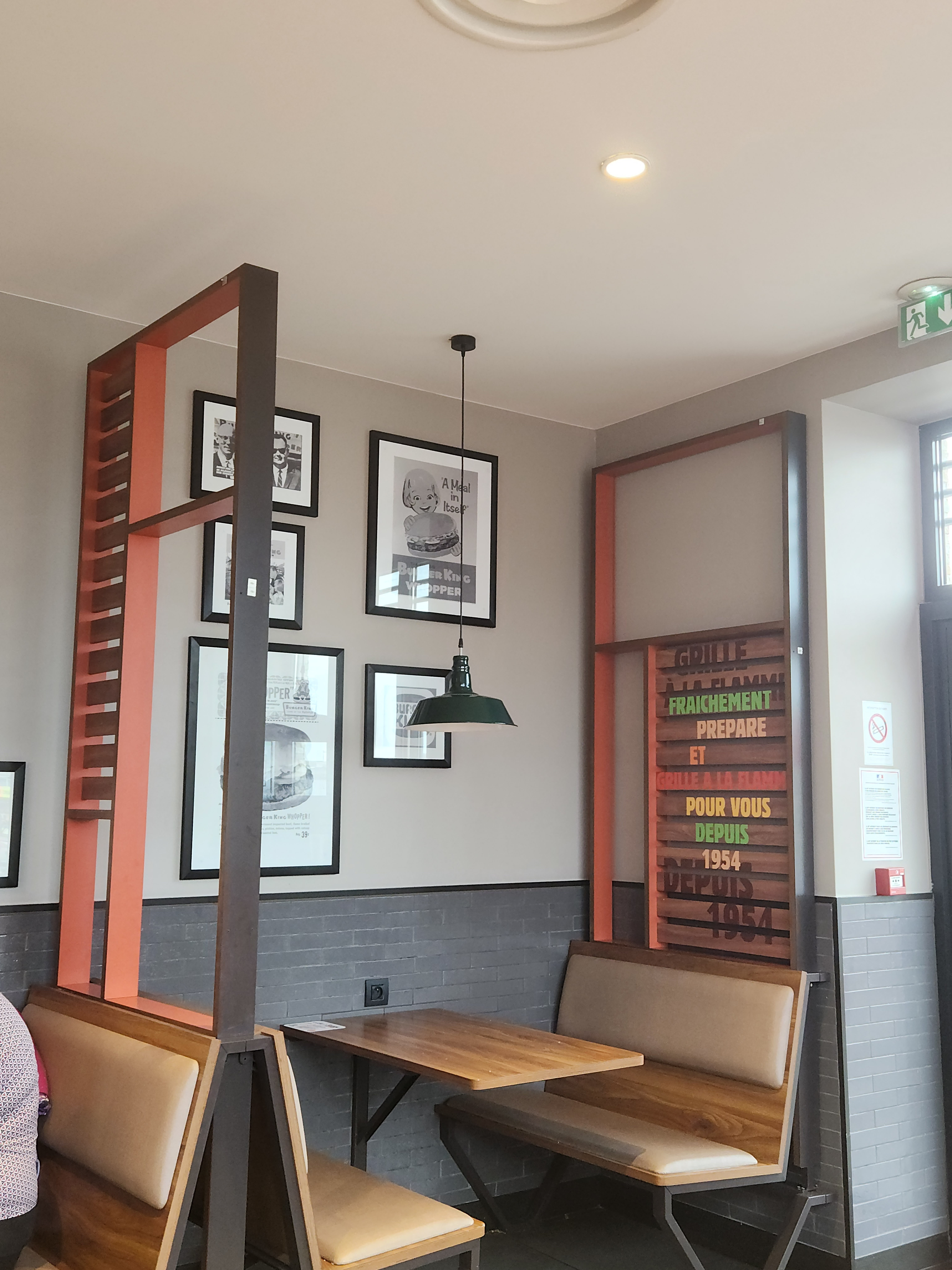 Environnement neuf et très propre. Personnalisation de son menu possible à la borne un vrai plus ! Petit bémol sur le burger, je n'ai pas retrouvé le goût de la viande cuite au grill pourtant caractéristique de l'enseigne.