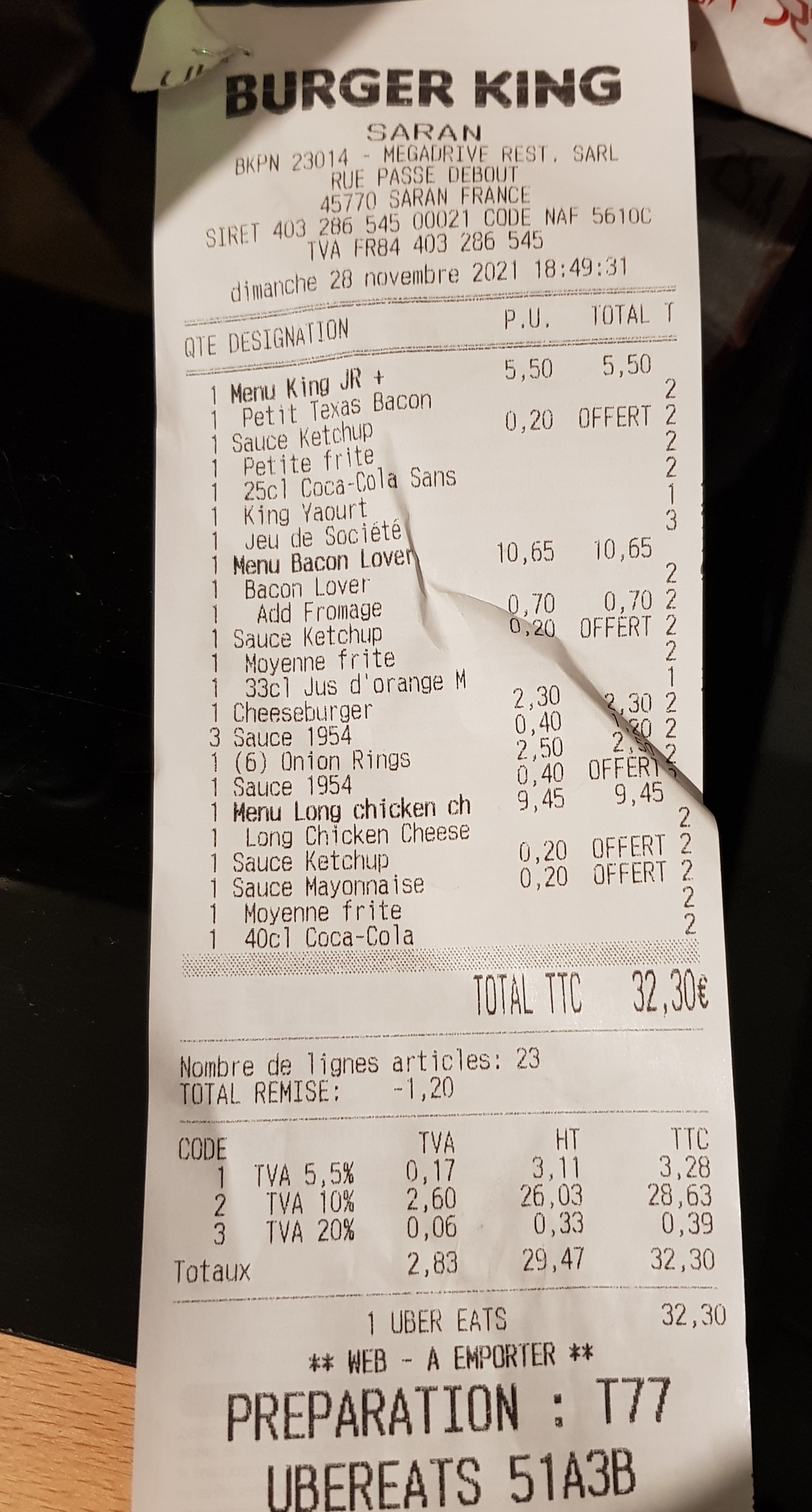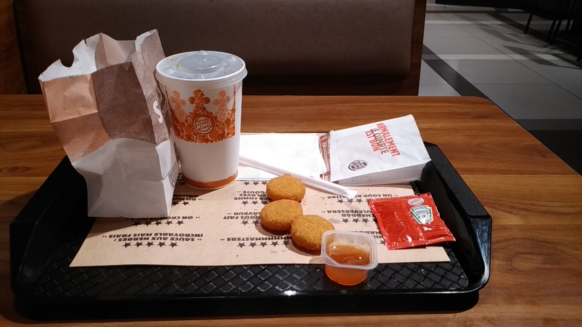 Bon burger king, restaurant propre, commande récupéré rapidement