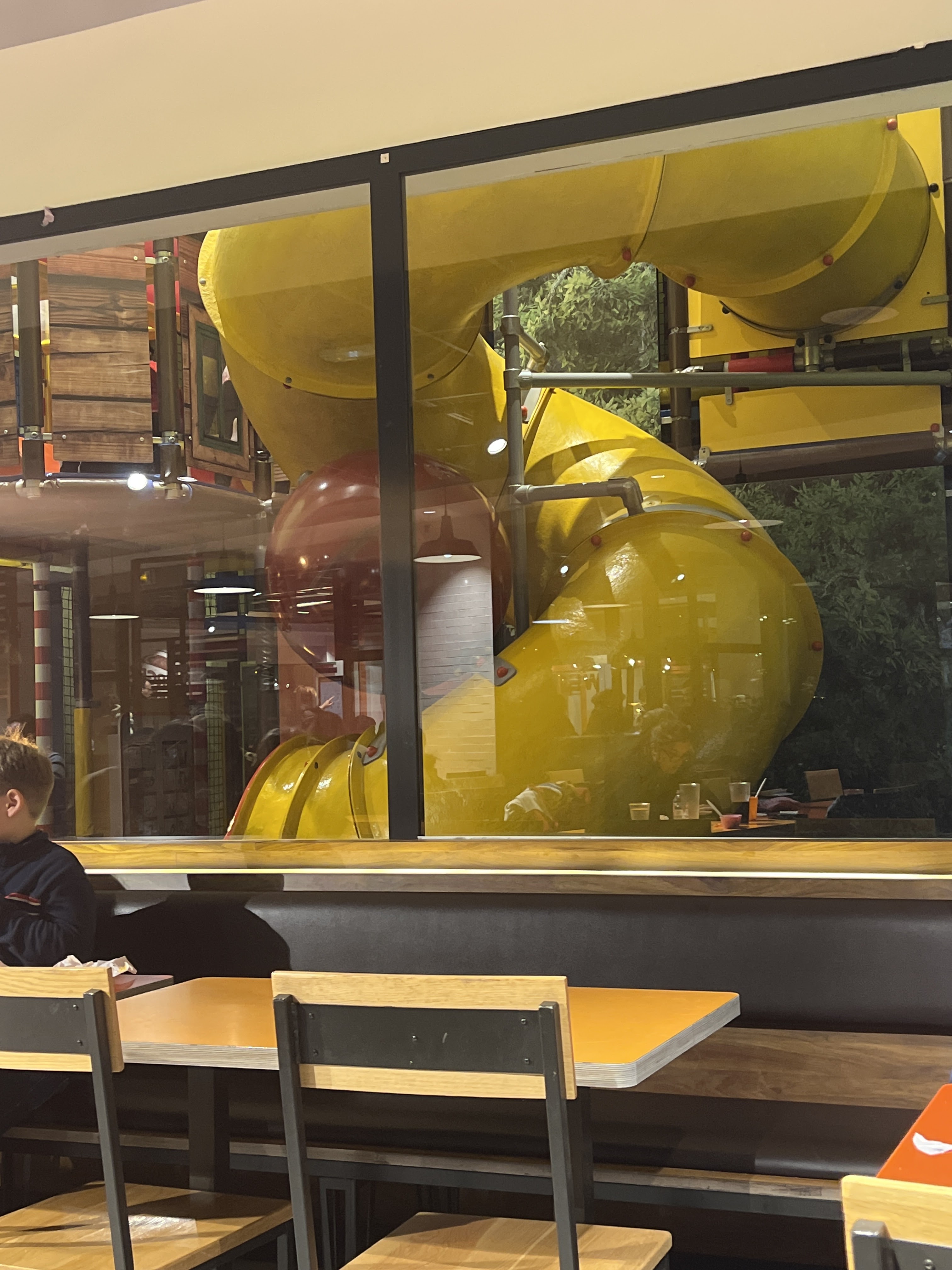 Nous avons fait un arrêt au burger king en nous rendant en vacances (proche de l'autoroute) Beaucoup de place, espace enfant avec jeu et chaise haute. Un membre du personnel nous a même cherché une chaise haute et là mise à notre table. Possibilité de commander aux bornes (paiement uniquement par CB) ou aux caisses. Service rapide. Les frites et hamburger étaient bon, cela change d'autres chaîne de fast food