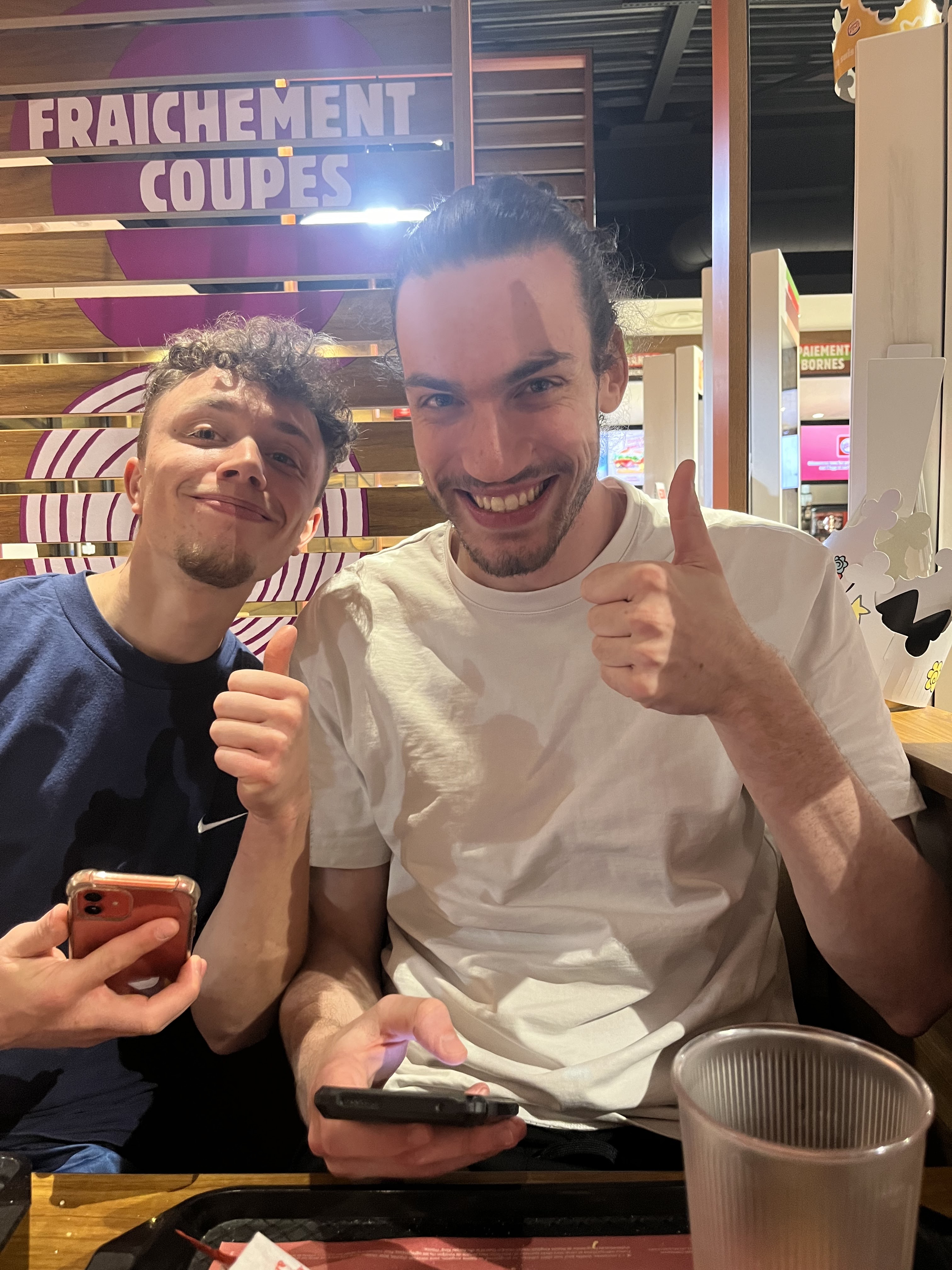 Ça fait 30 min qu’on est bloqué au drive… Je vais finir par manger mon volant, mais on fait un Pierre/Feuille/Ciseau avec la voiture derrière bonne ambiance !