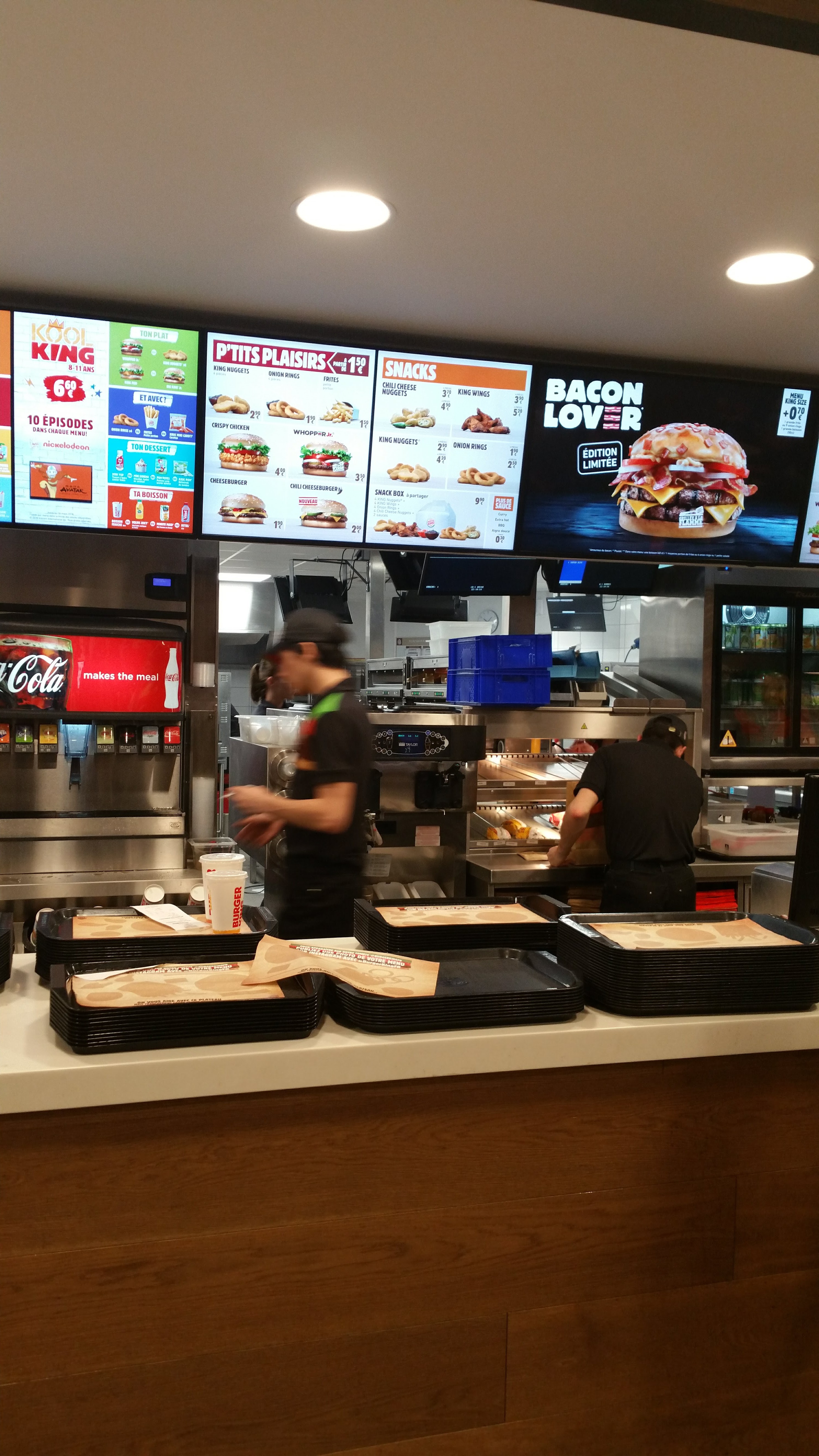 Honnêtement BK est excellent mais le service est lent au possible ! En plein rush, la grande majorité ne s'active pas Nous avons mis une heure à être servies. Je recommande si vous voulez bien manger mais si vous êtes pressés, mieux vaut ne pas y aller. (Sinon à emporter).