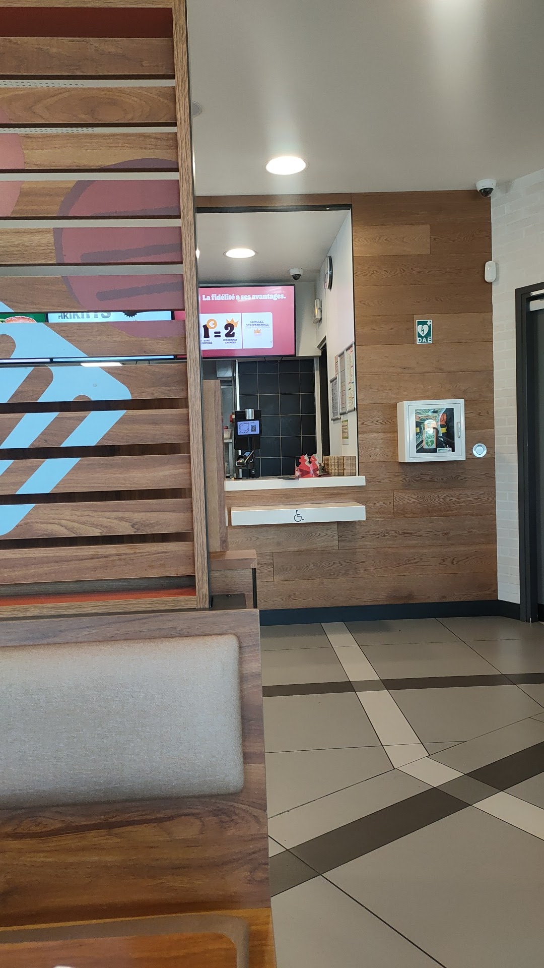 Je suis très déçu de la qualité des burgers, le pain du haut était froid et la viande sans saveur trop sèche. Les tables par contre sont propres et le personnel agréable. Également déçu par les glaces qui ne ressemblent à rien par rapport aux images présentées, cela ne donne pas envie. Ce burger King est beaucoup moins bien que celui de vichy gustativement, dans lequel on s'est régalé. Le parking est trop petit par rapport au volume intérieur, heureusement que le parking de auchan est à côté. Merci auchan