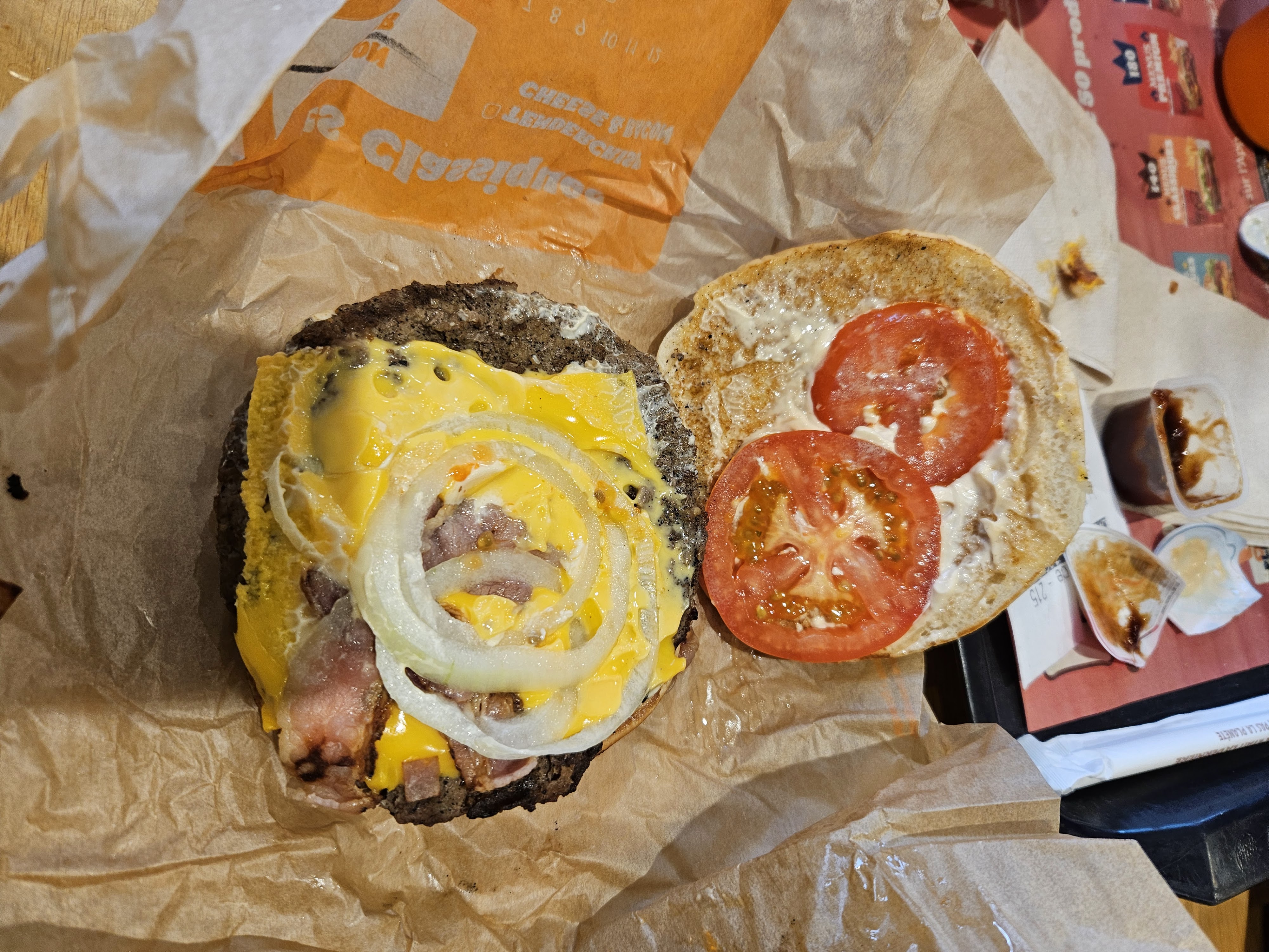 C'est un scandale ! Bon déjà pas de King Fries ni de glaces à 21h30 un lundi. Bon à la rigueur un manque dans les stocks peut arriver, ayant déjà travaillé dans un Burger King je peux comprendre. Mais en plus de tout ça, un service tardif, un équipier en appel pendant qu'il nettoie la salle à côté de nous. Et pour finir, regardez la photo et vous comprendrez. Vous étiez aussi en rupture de sauce ? J'ai jamais gouté de burger aussi sec depuis maintenant 7 ans à manger dans vos restaurants ! Grosse déception, je retenterai mais gare à vous !
