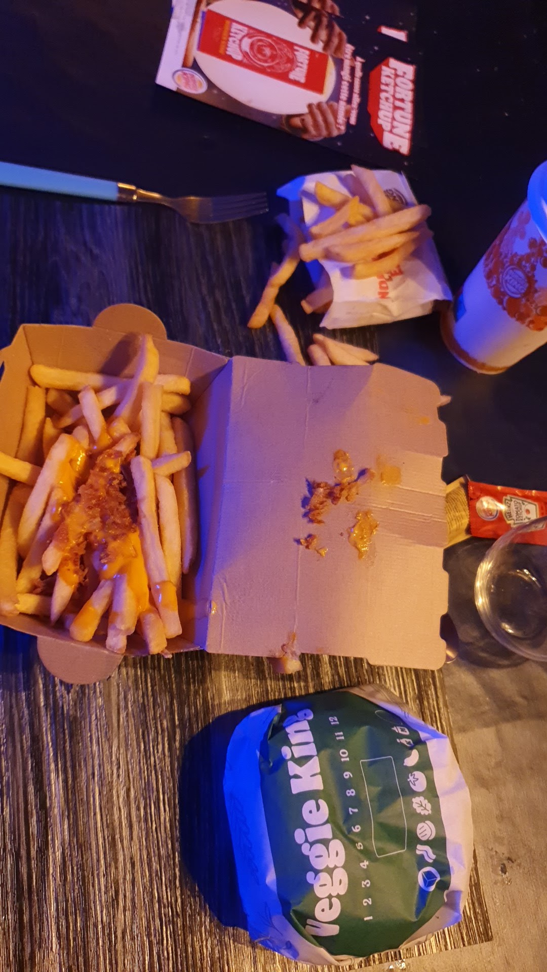 Y en a marre de toujours avoir des boissons, sans gaz, un coca zéro, arrivée chez moi, il est juste infecte, on dirait un coca du frigo qui date d’une semaine y’a plus de gaz y’a plus goût.😕 dorénavant, je ne prendrais que des burgers et je m’achèterais un coca chez moi. Quant à la sauce King Fries, oignons qui est un supplément à plus de un euro. Posé sur des frites, on dirait une crotte de lapin. Car y a pas grand-chose dessus. Enfin bref, super dégoûté.