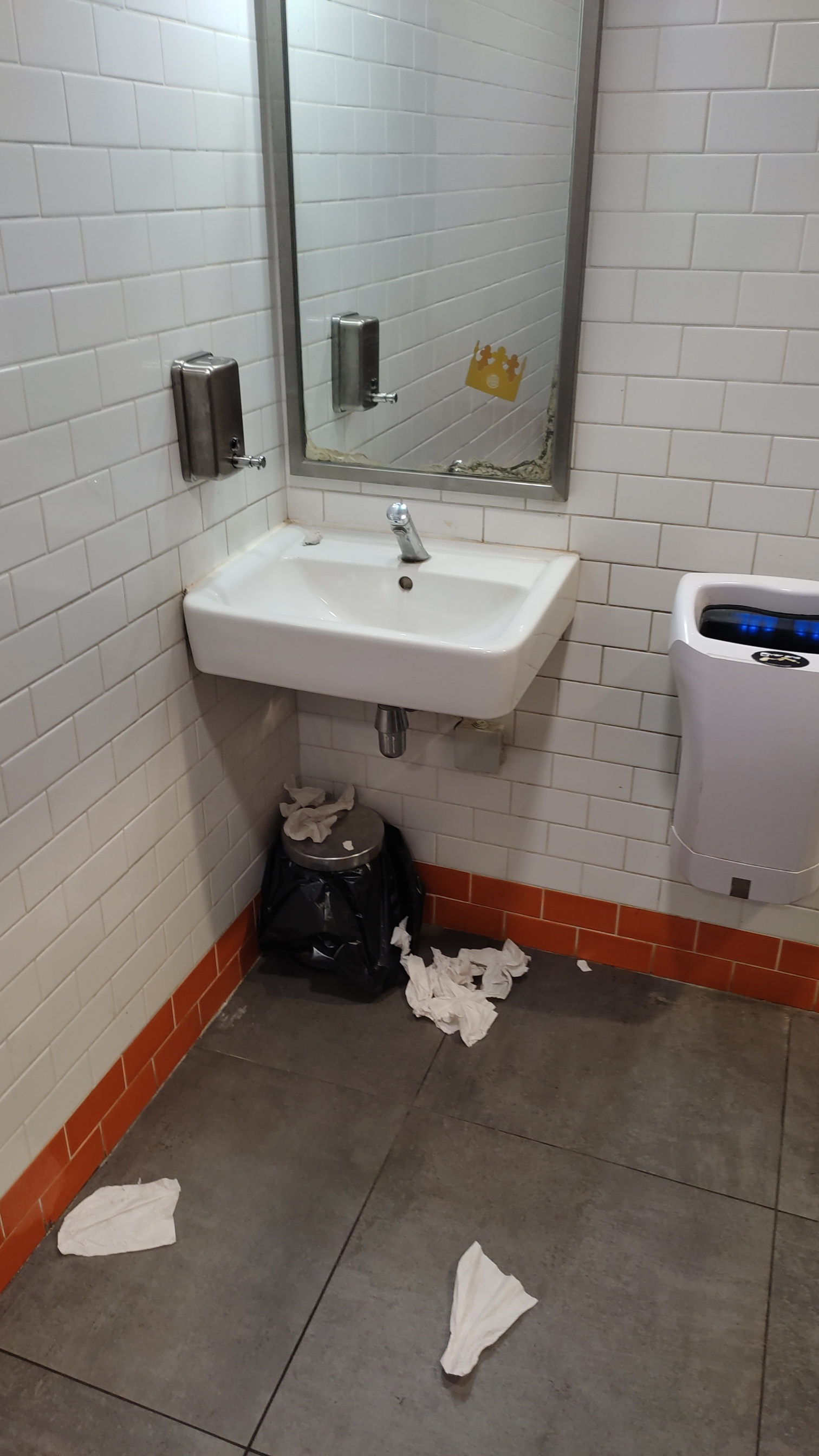 Sale très sale toilette pas nettoyé poubelle qui déborde sol pas nettoyé aucune table de propre heureusement qui y a le COVID ni a microbe