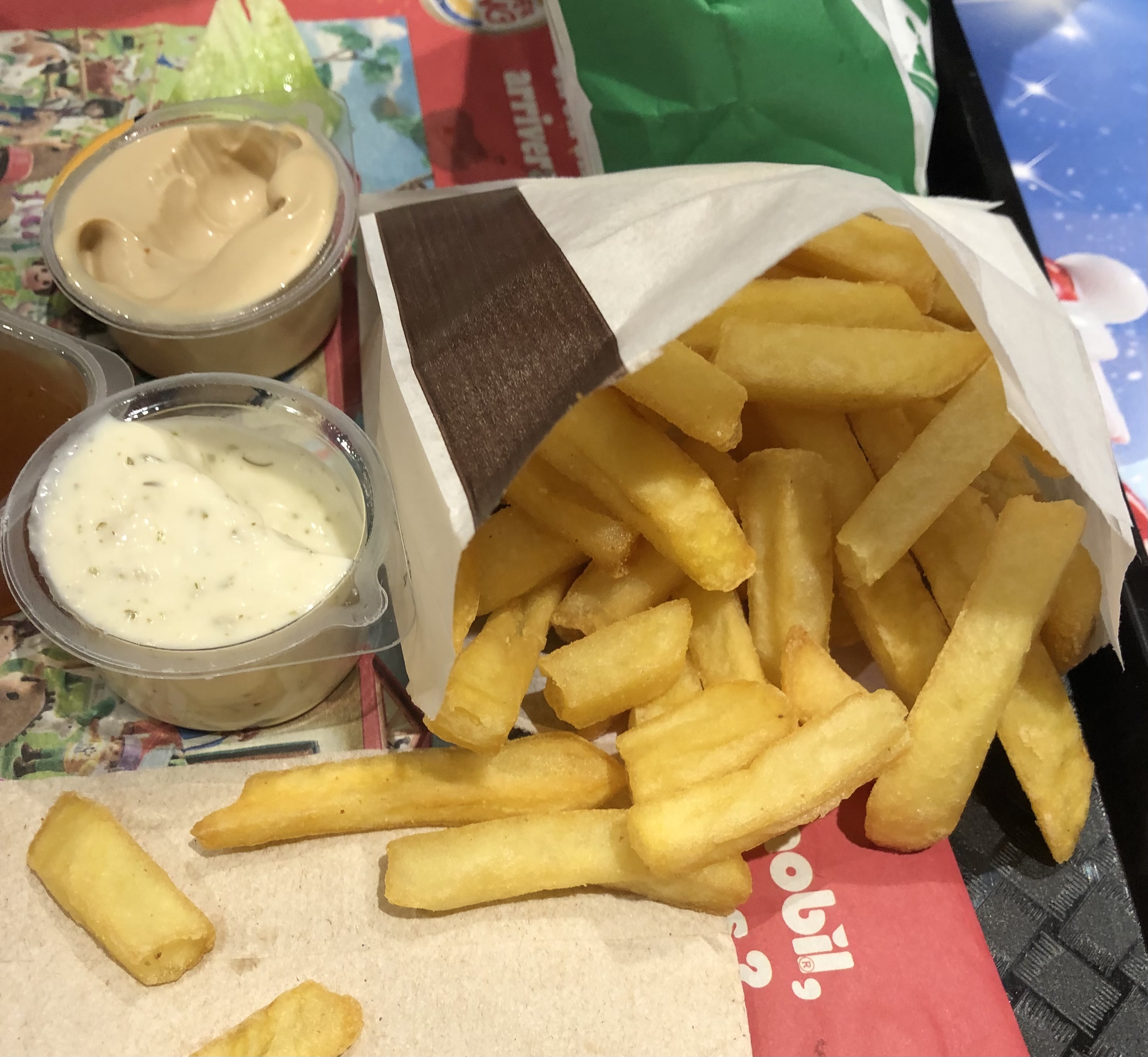 Tous les éléments composant notre commande étaient froids : burgers, wrap, frites. Tout était préparé beaucoup trop en avance et les frites étaient toutes molles. Expérience très décevante. Le puzzle des enfants s'est transformé en simple tattoo.... les enfants étaient déçus et ça ne vaut pas le prix payé !