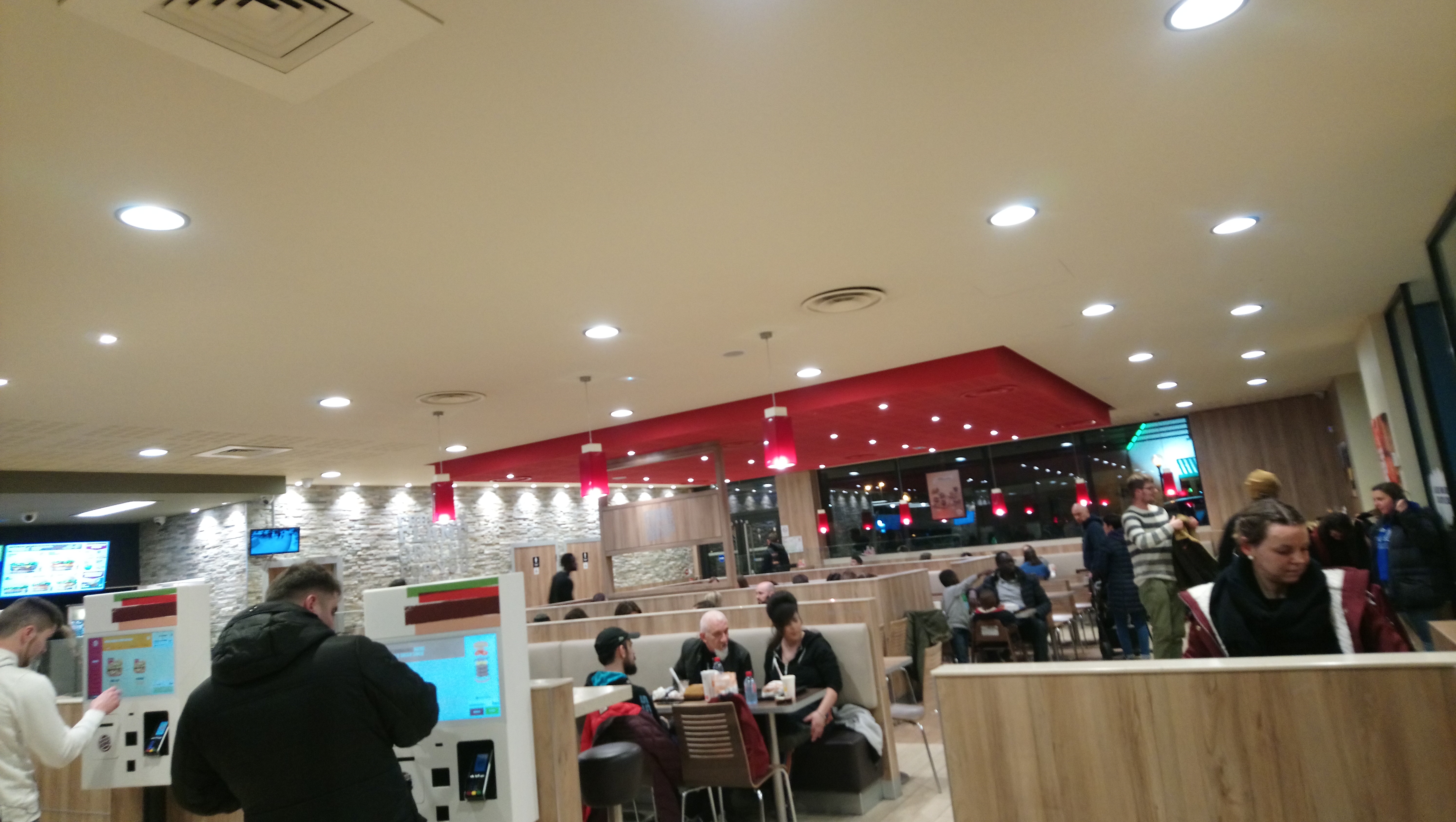Restaurant rapide pas aussi terrible qu'on pourrait le penser. C'est correct mais sans plus et les hamburgers sont rarement chauds. Tables et fauteuils ou chaises pas très bien nettoyés.