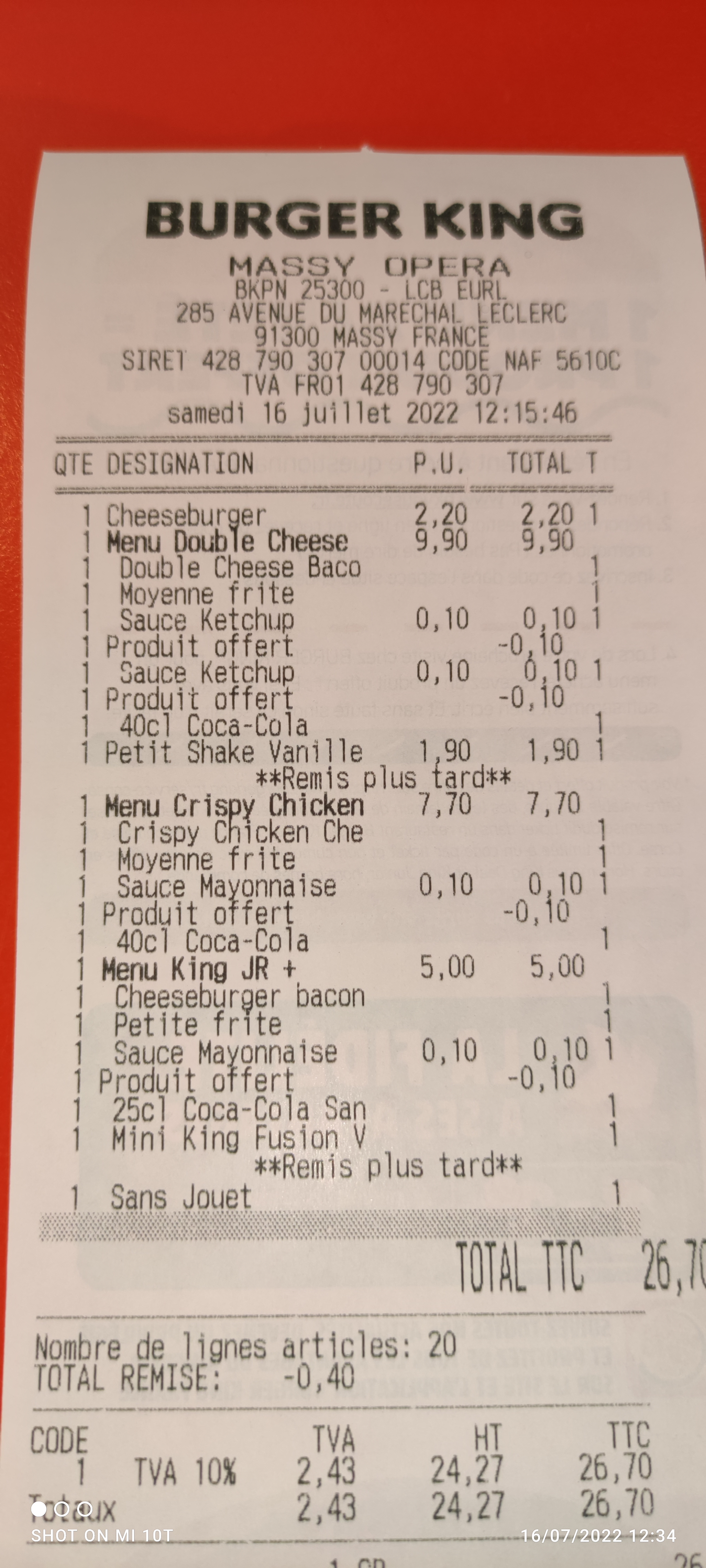 Edit décembre : Ça continue. Si vous commandez au drive après 22h vous rentrez chez vous et avez des sandwichs surprises ! Dans mon papier de Big King j'ai.... Un chicken Louisiane 🤬🤬🤬 De plus en plus d'oublis ou d'erreurs dans les commandes au drive. Et en plus cette fois-ci les frites étaient recuites et dures...