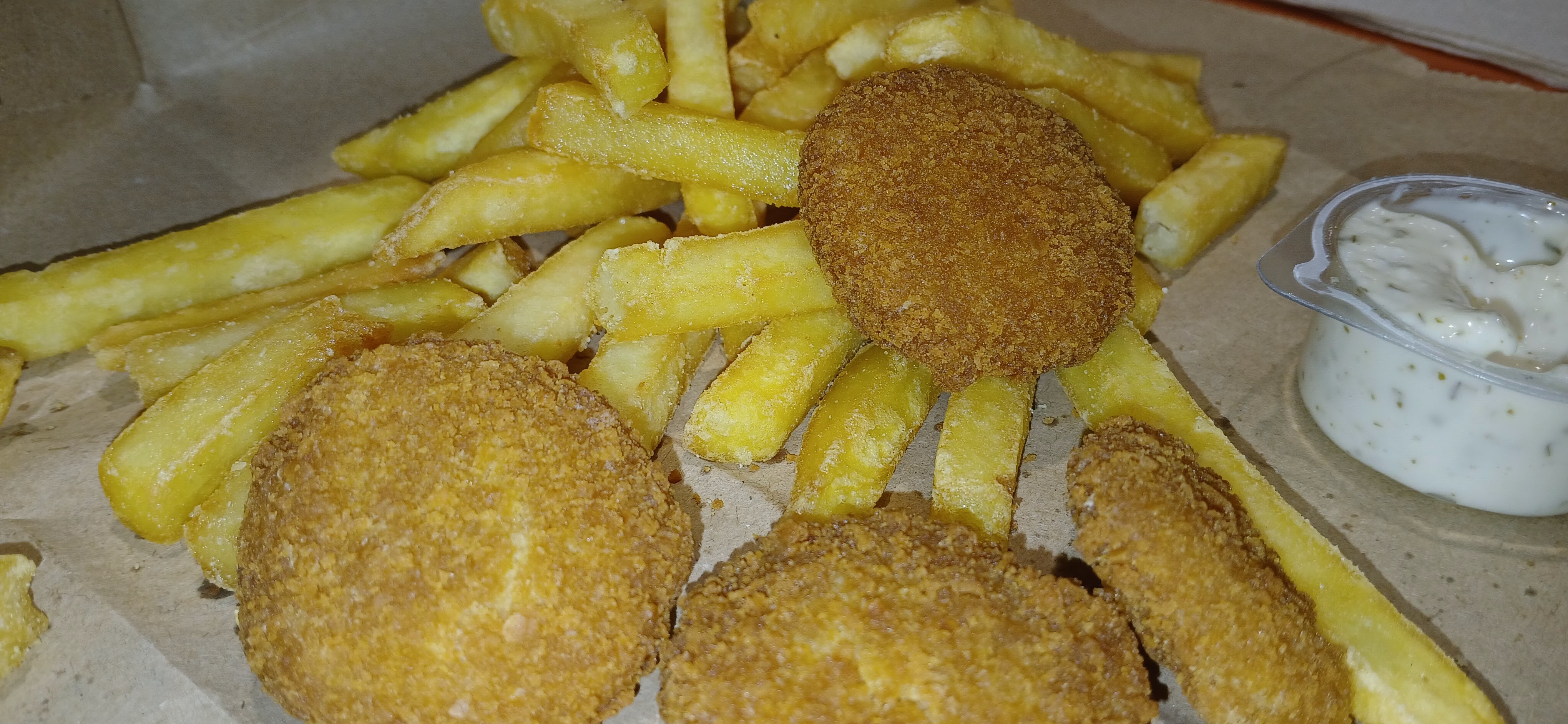 Pour le prix !!! À emporter et pas la commande entière !!!Franchement !! ...déçue alors que pas mal me disait que c'était mieux que Mac do!!! Et au niveau goût. ..fade. On a pris différentes choses et les sauces à l'intérieur sont les mêmes !!!qu'ils les appellent tous pareils...ya que la viande qui change.