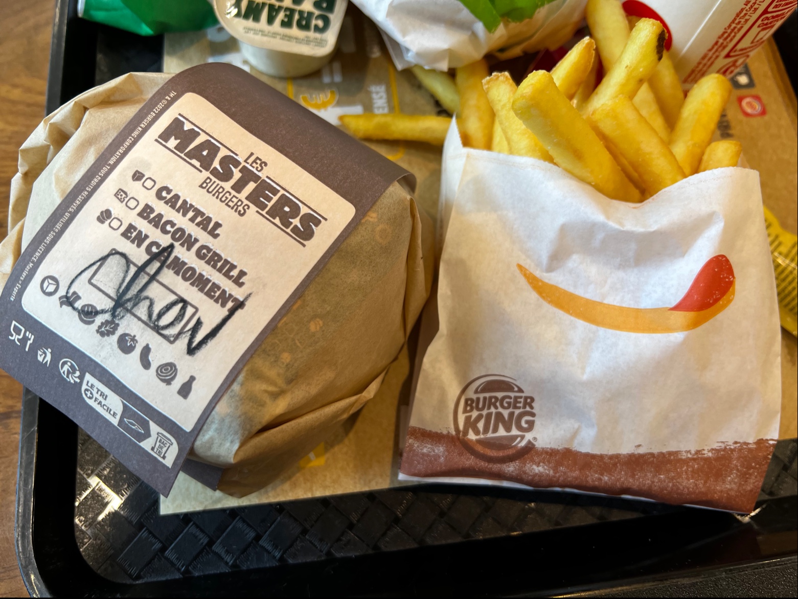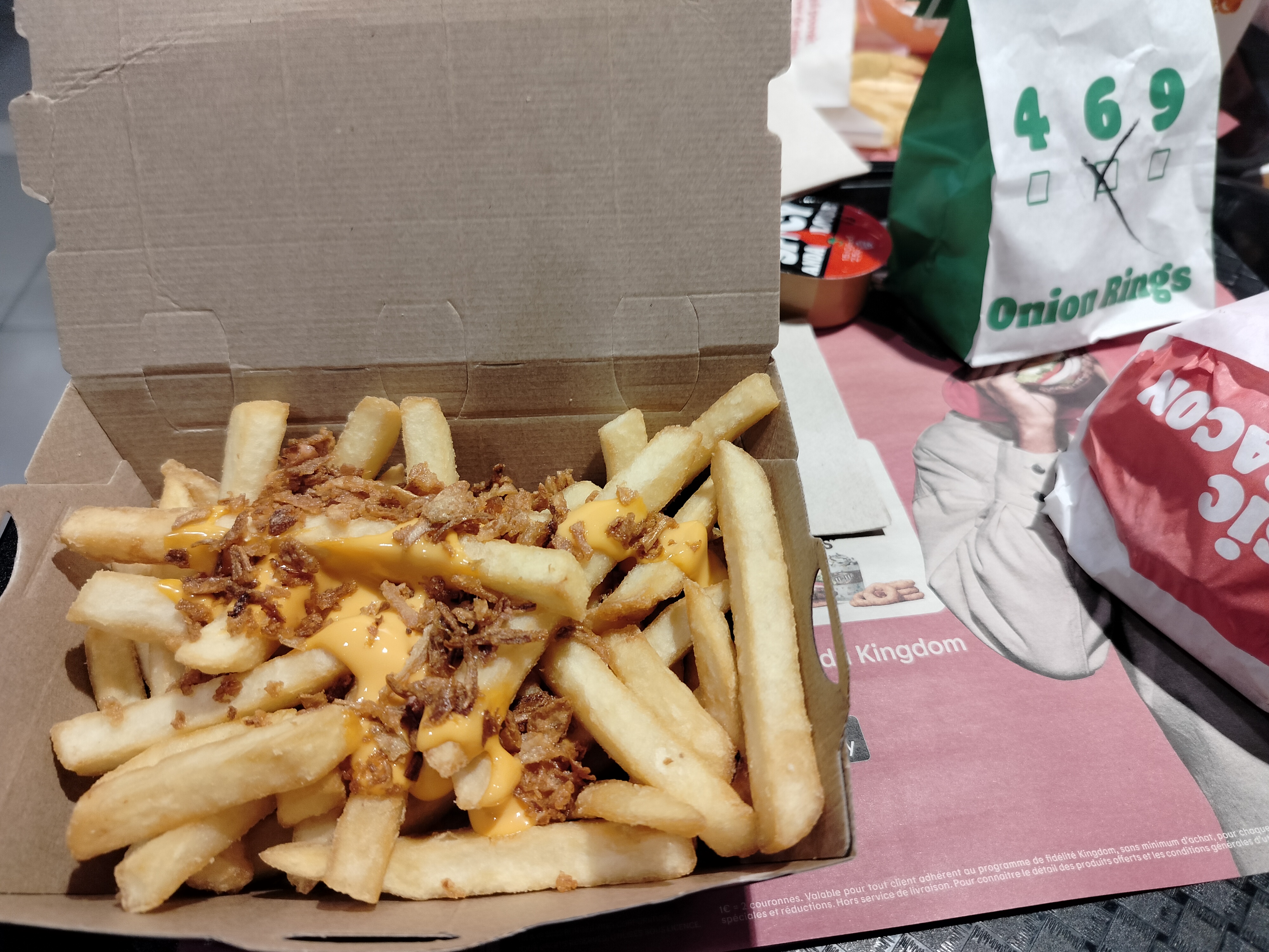 Je viens de sortir du bk ils pensent a te facturer le supplément pour les frites au bacon mais pas capable de les mettres dans le sac voyant que je suis pressé la caissière me dit c'est ça ou faut attendre 10 minutes et n'as même pas proposer de me rembourser la différence je trouve ça dégueulasse de faire payer 3.2 et ne