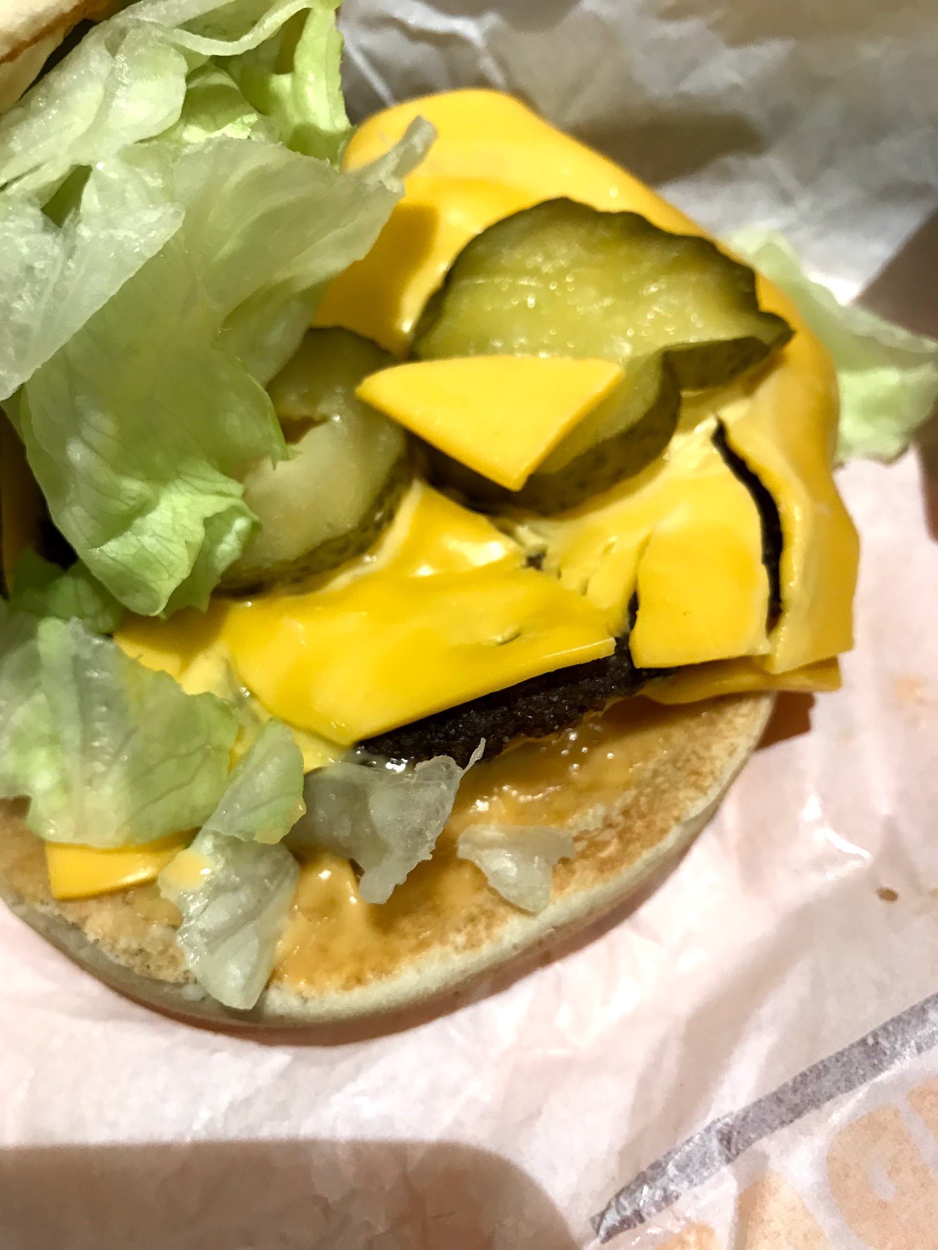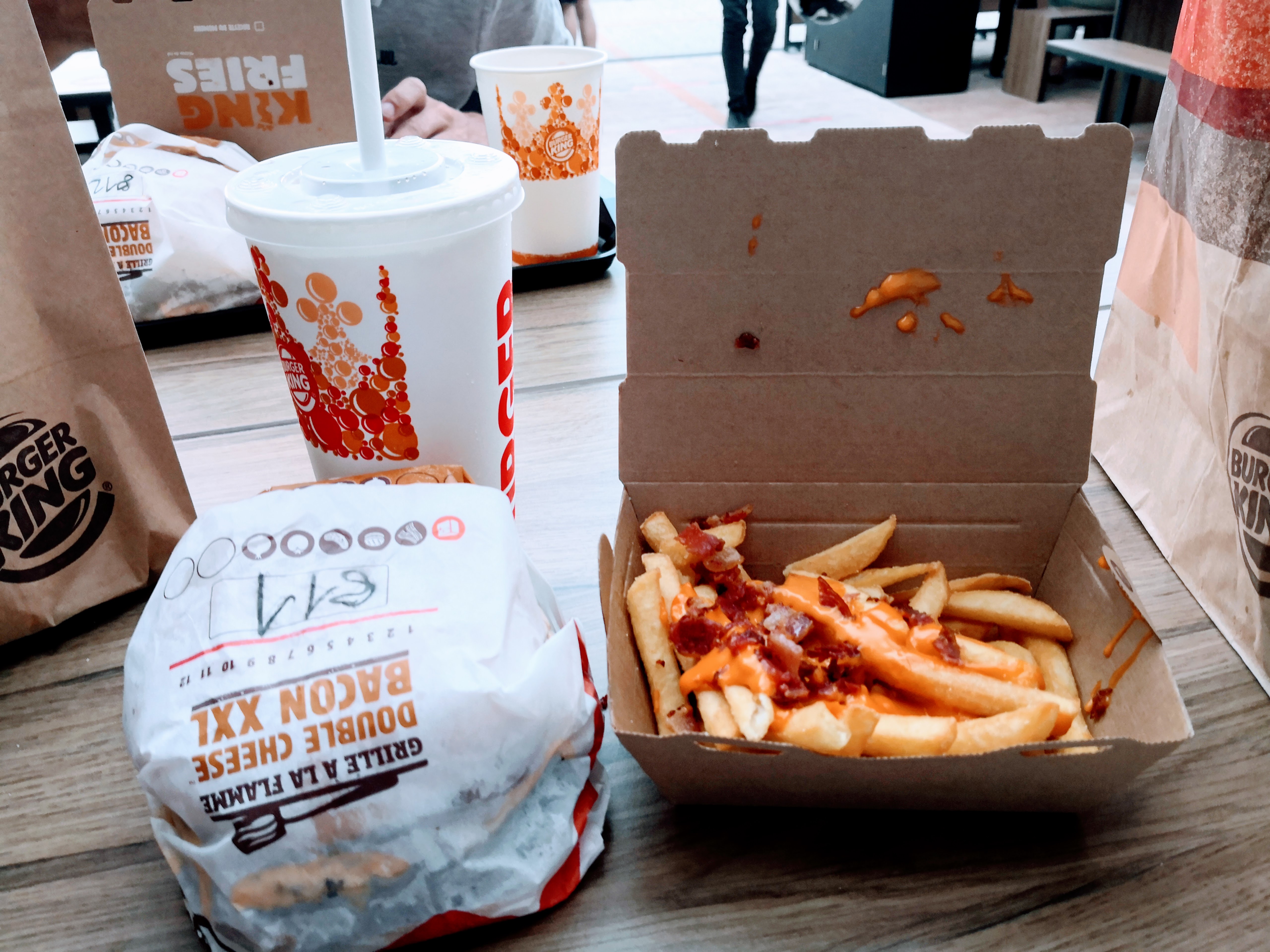 C’est ça un double cheese bacon XXL? J’aurais dû manger mon bain au lait au lieu d’acheter ce truc
