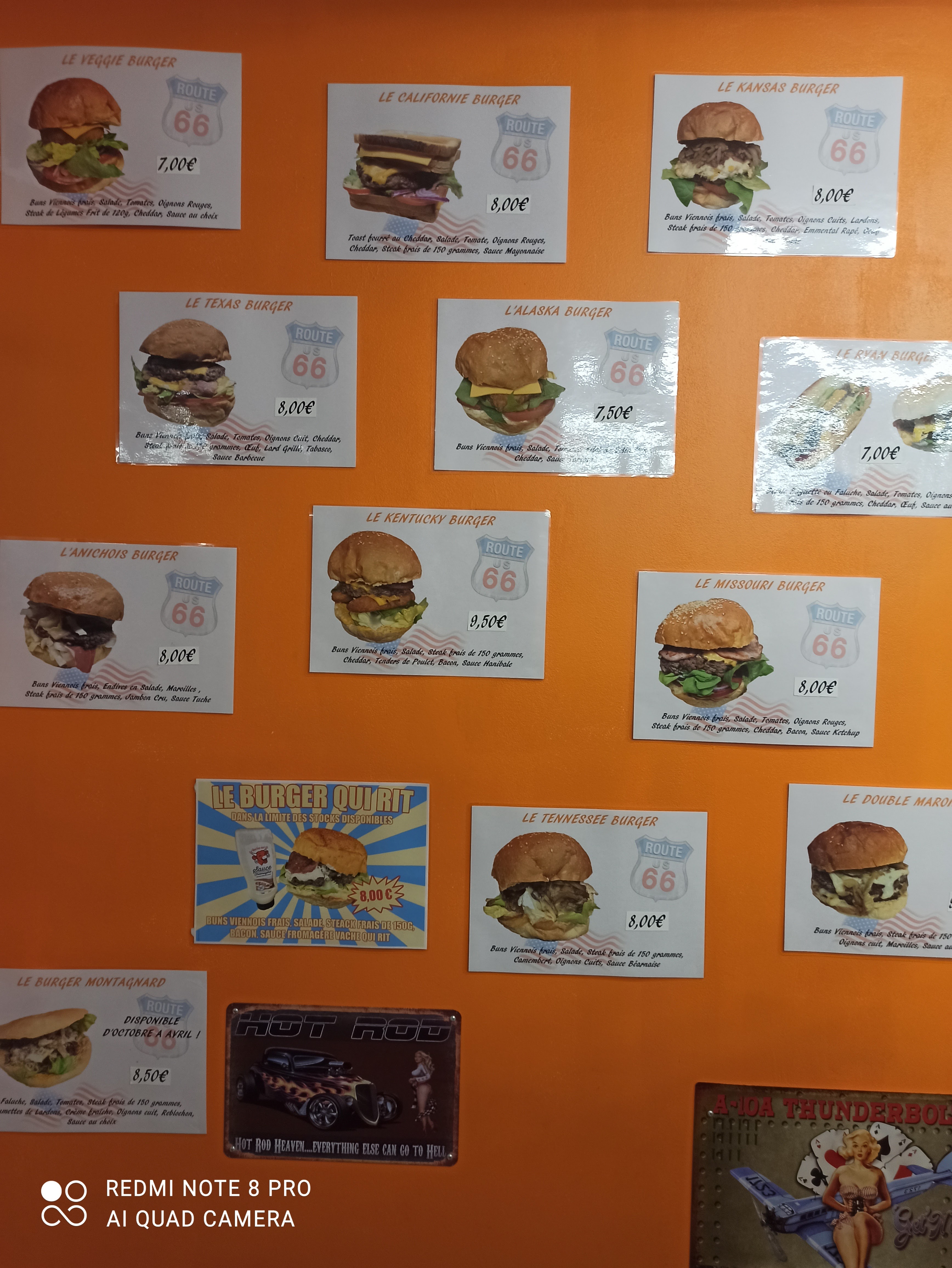 Ambiance , un mur avec les différents burger mais surtout un régal . Frites fraîches un délice .