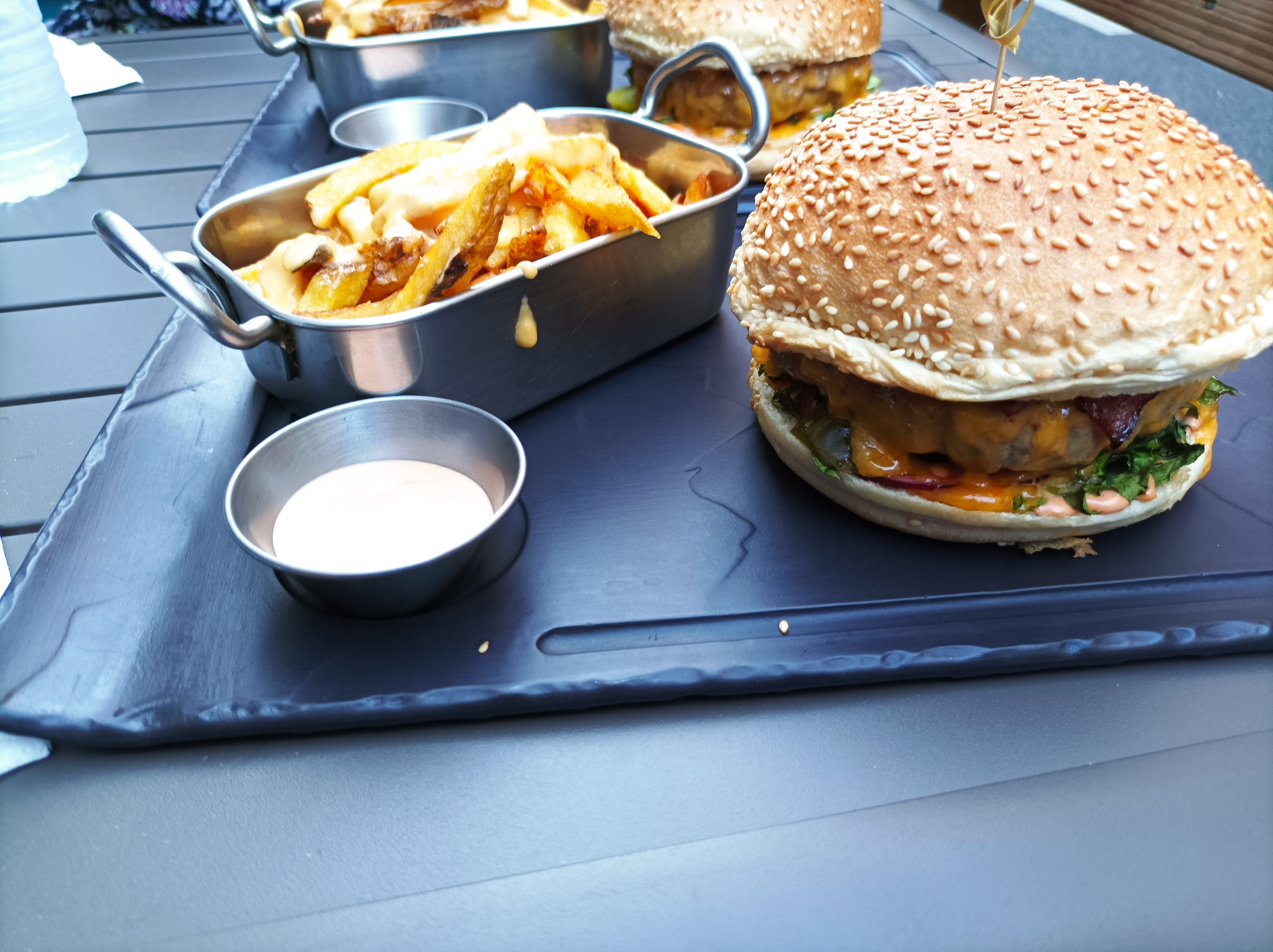 Bonjour, Nous avons visité avec ma femme ce burger car il avait de bons avis et qu'il avait surtout la sauce bleu (délicieux dans un burger à défaut d'avoir une tranche de fromage bleu ...) Donc on arrive on trouve la porte fermée avec un serveur assis a l'air nonchalant, il vient nous ouvrir et nous pose une tablette pour commander directement , je poses en 1er la question sur la sauce bleue il me répond : non ca c'était avant et là on se dit on va commander quand même , installés en terrasse pleine de moucherons en compagnie de quelques sdf juste derrière à boire et crier , franchement nous avons mangé en stress et en angoisse, les burgers sont servis , frites aux cheddar bonnes frites maison, le burger est cher pour sa qualité , beaucoup de bouts de gras de tailles conséquentes , le bas du burger est humide car les cornichons non égouttés ... Franchement pas terrible, 35€ pour 2 burgers avec 1 perrier et 1 bouteille d'eau c'est cher pour manger angoissé et humide bref je ne recommandes pas