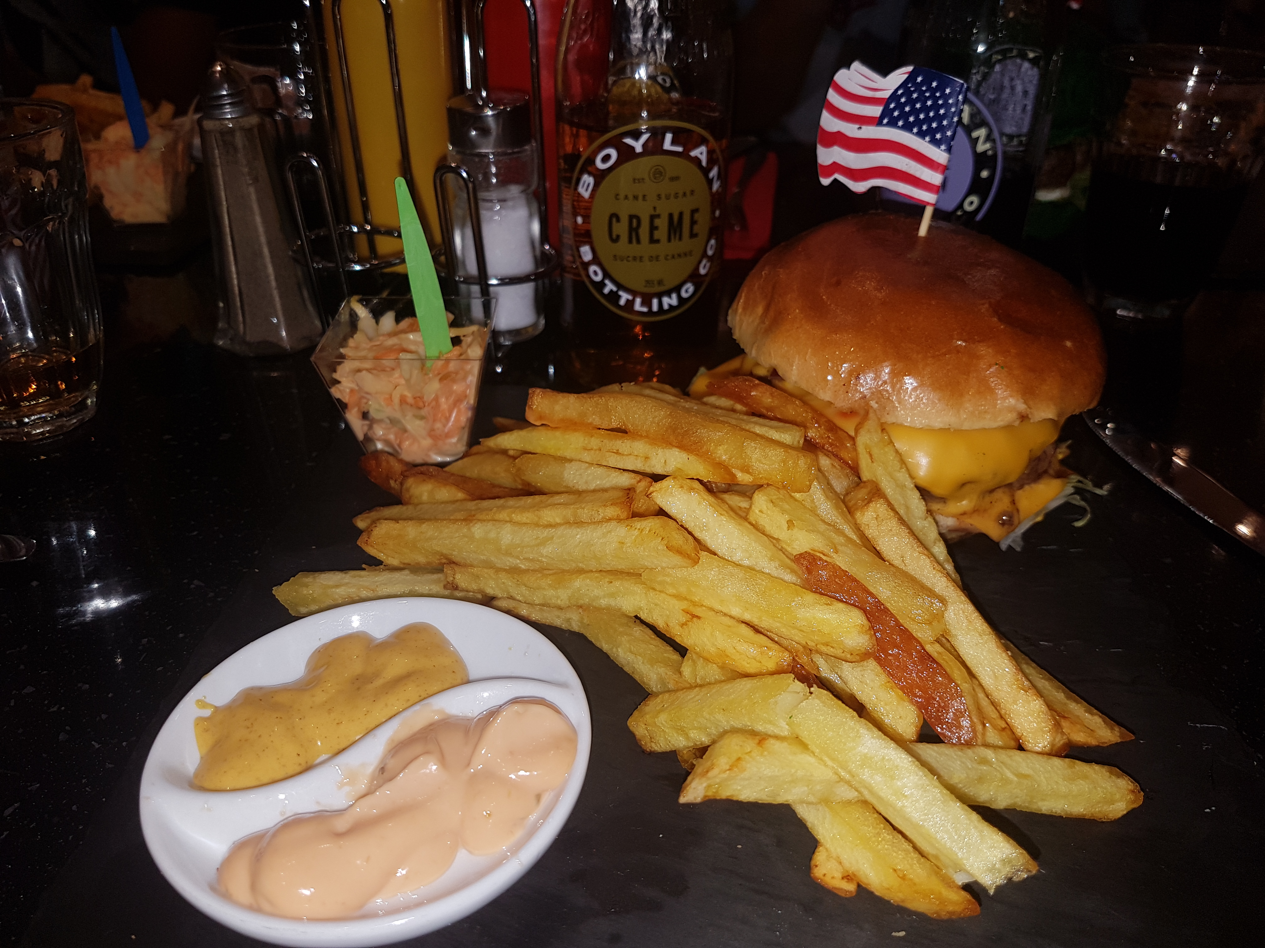 Burger , frites , dessert au top , le deco est parfait sa colle au thème de la carte , serveur est cuisto agréable. Seul petit bémol pas de boissons classiques seulements des boissons américaines