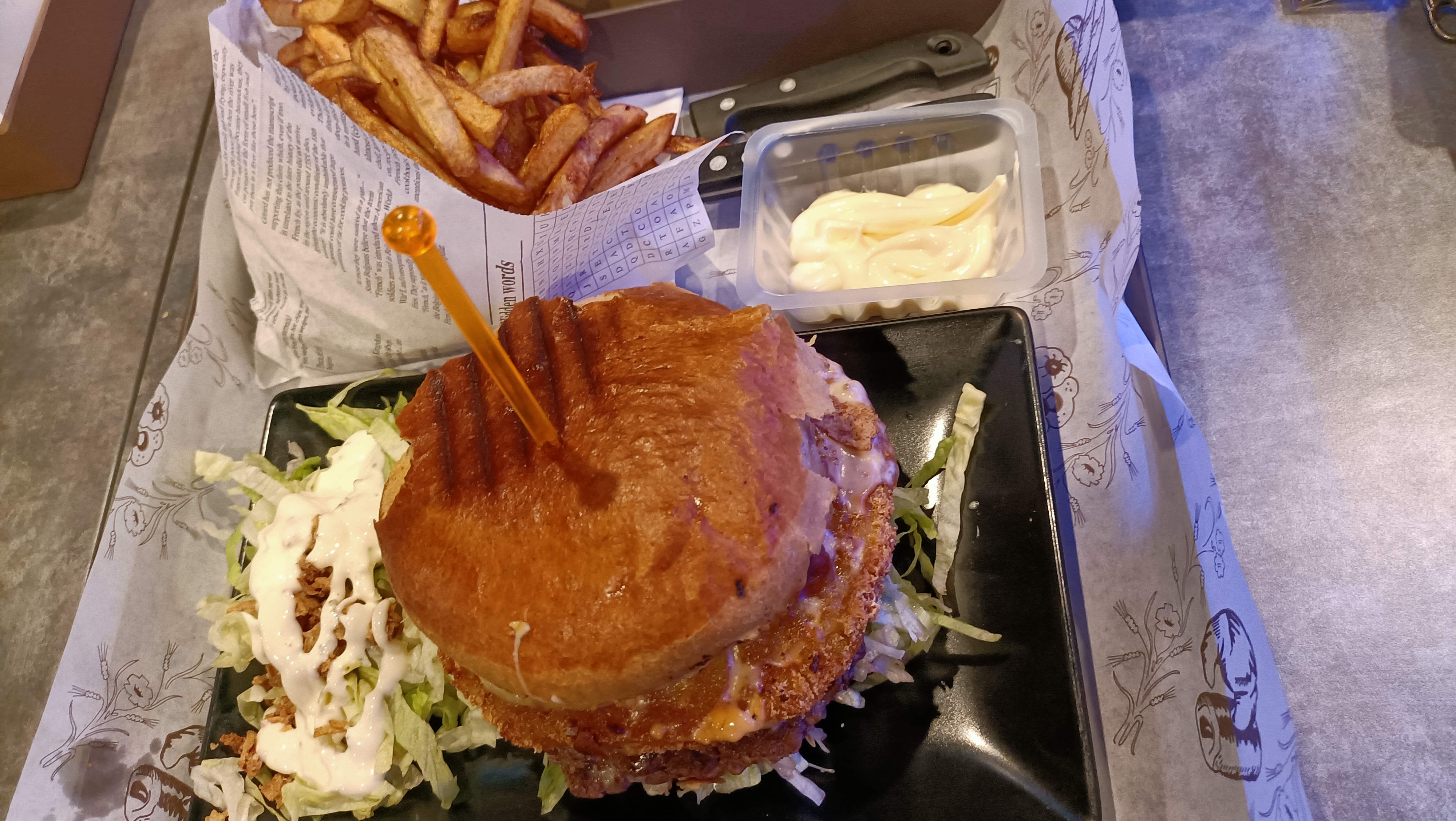 Je recommande vivement ! J’ai pris un burger maxi raclette rosti et il était délicieux et surtout énorme ! Prix très correct et personnel sympathique.