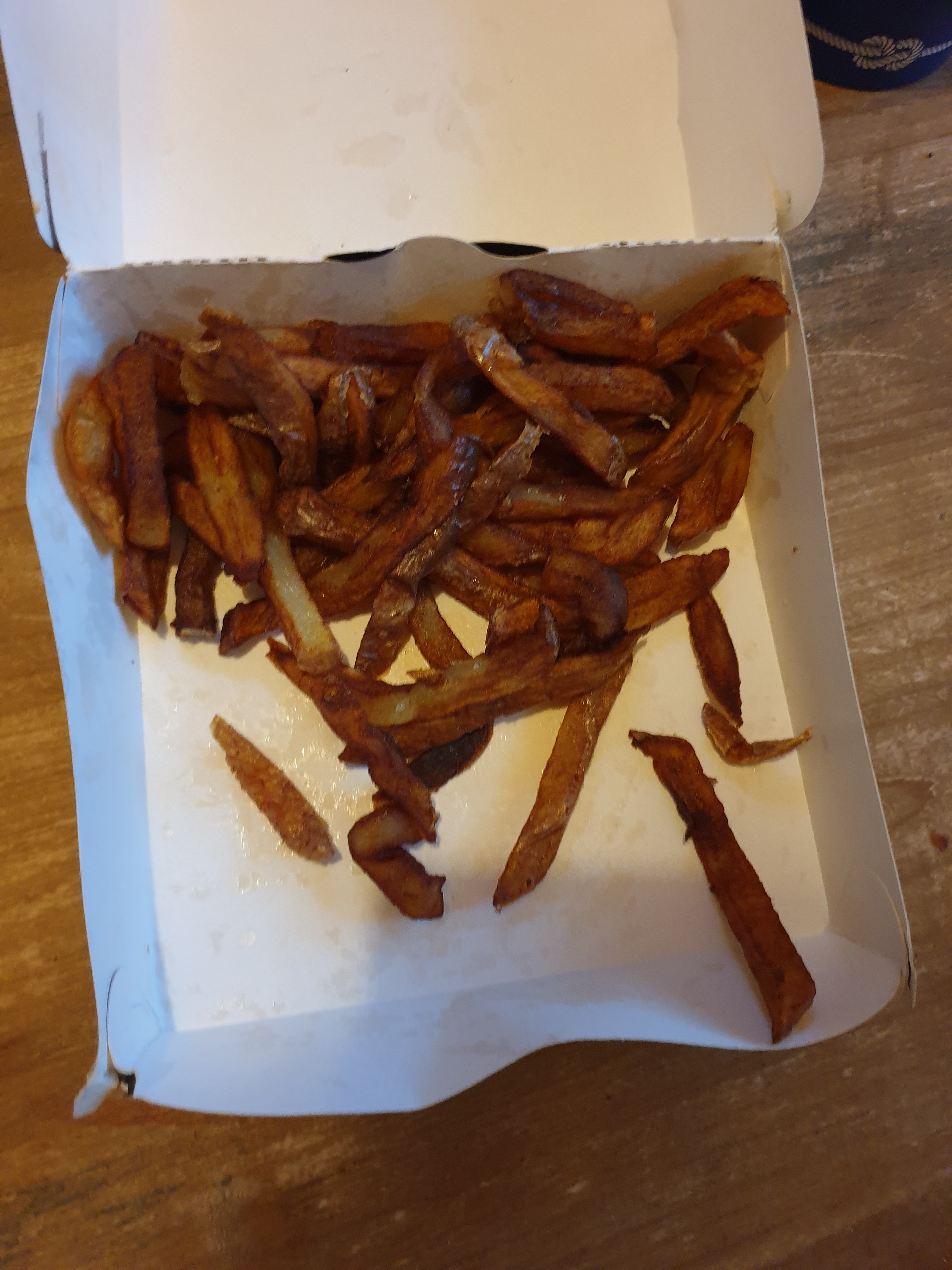 Voilà les frites maison fraîches 🤔, je pense que l'huile était un peu usée, et commande pas complète... dommage