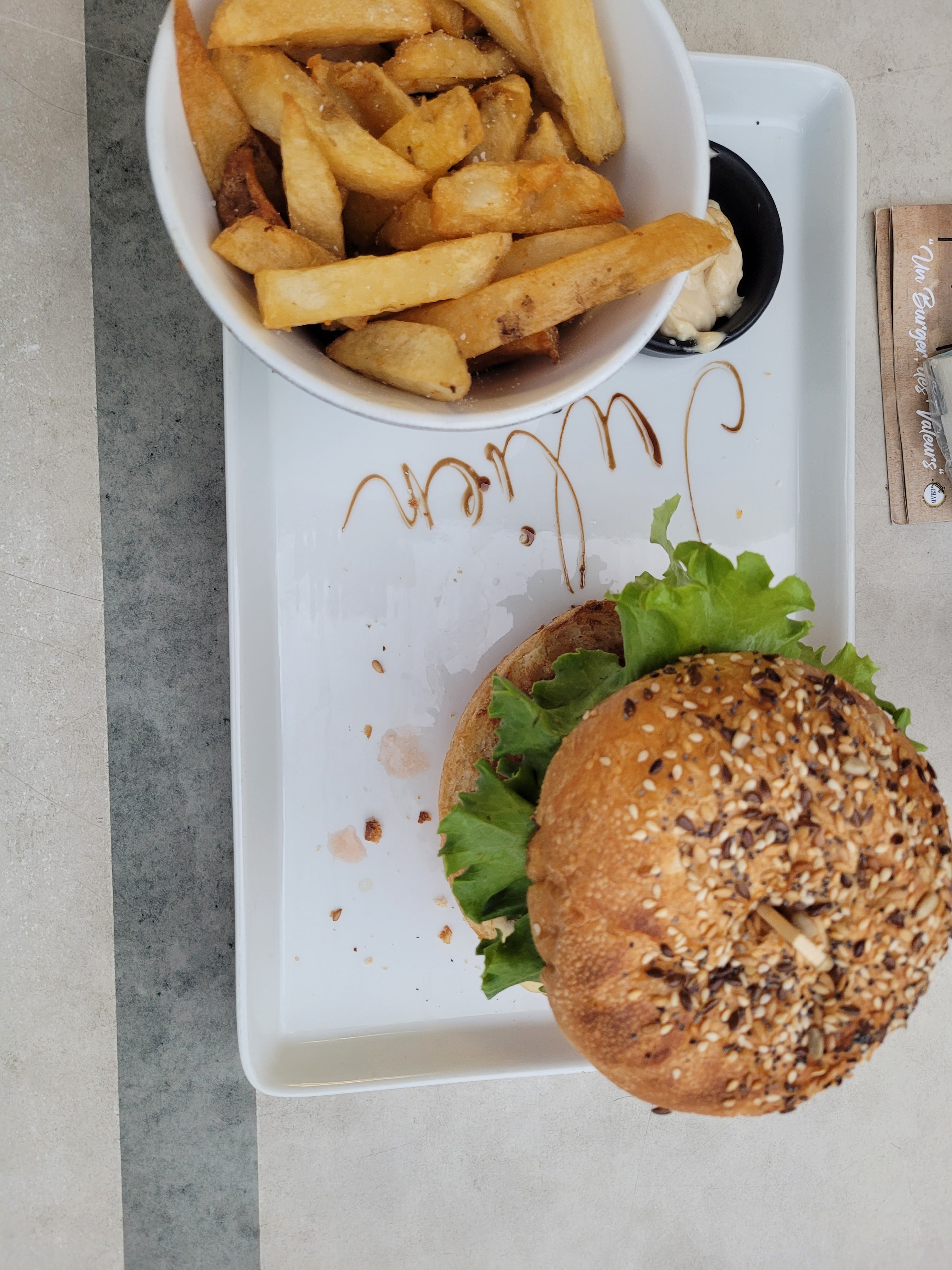 Burger végétarien qui déchire, pain pavot super bon , frites maison avec une sauce cheddar excellente . Un accueil avec le sourire un service au top. Mes papilles vous remercient.