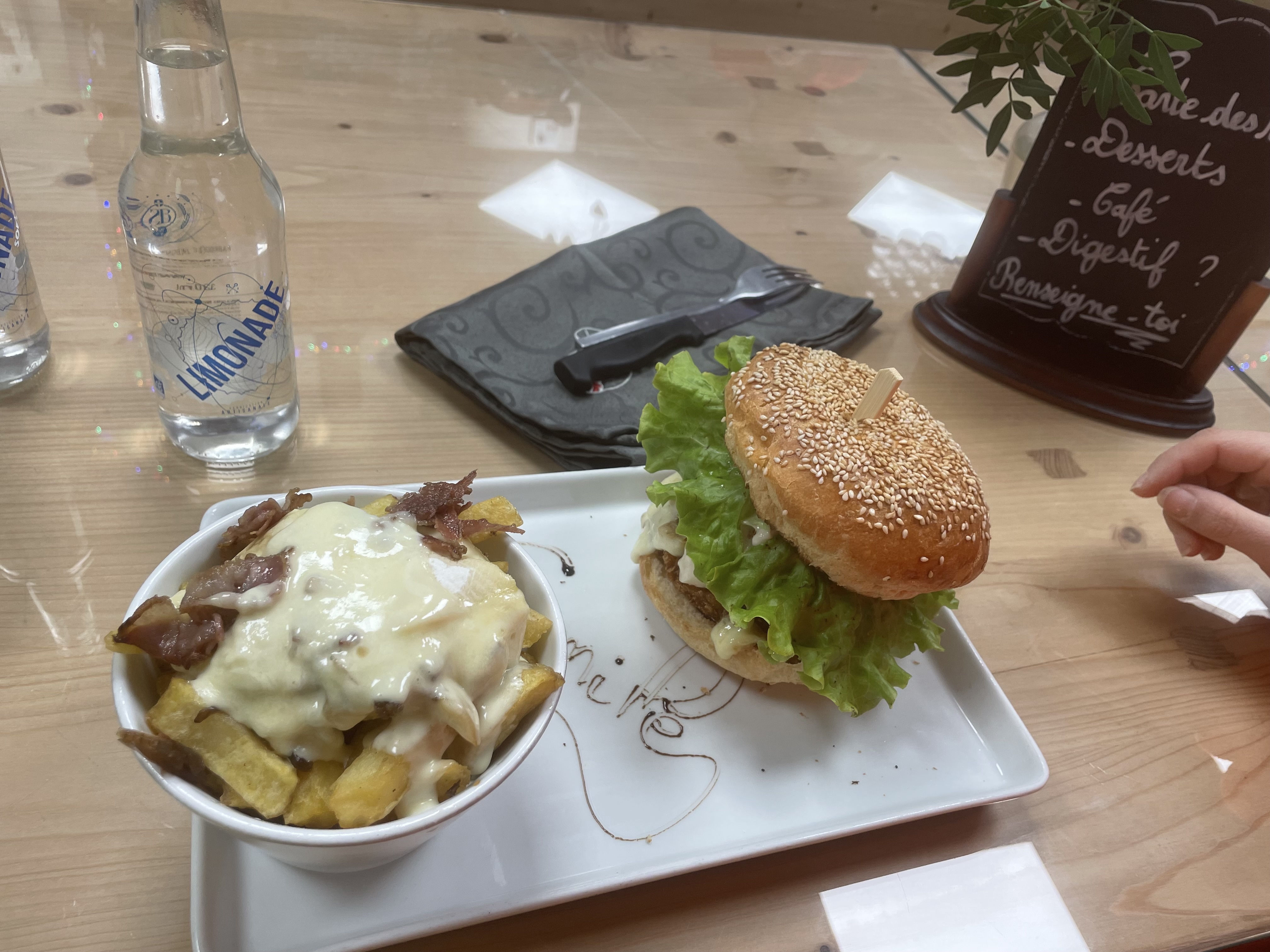 Un restaurant incroyable dans les Alpes françaises, qui offrait un très bon burger (poulet et normal), le personnel était sympathique et l'emplacement à l'extérieur était le meilleur
