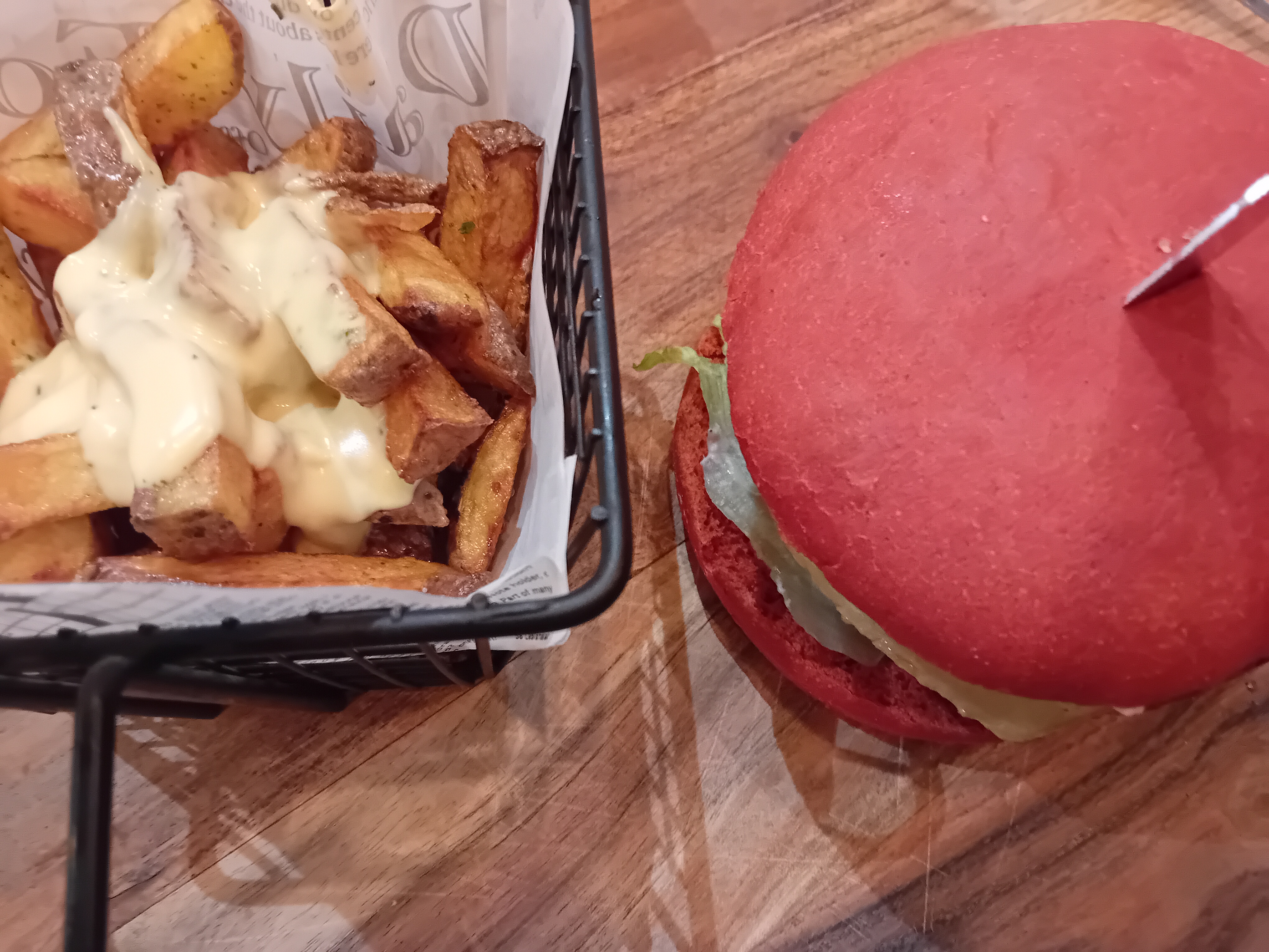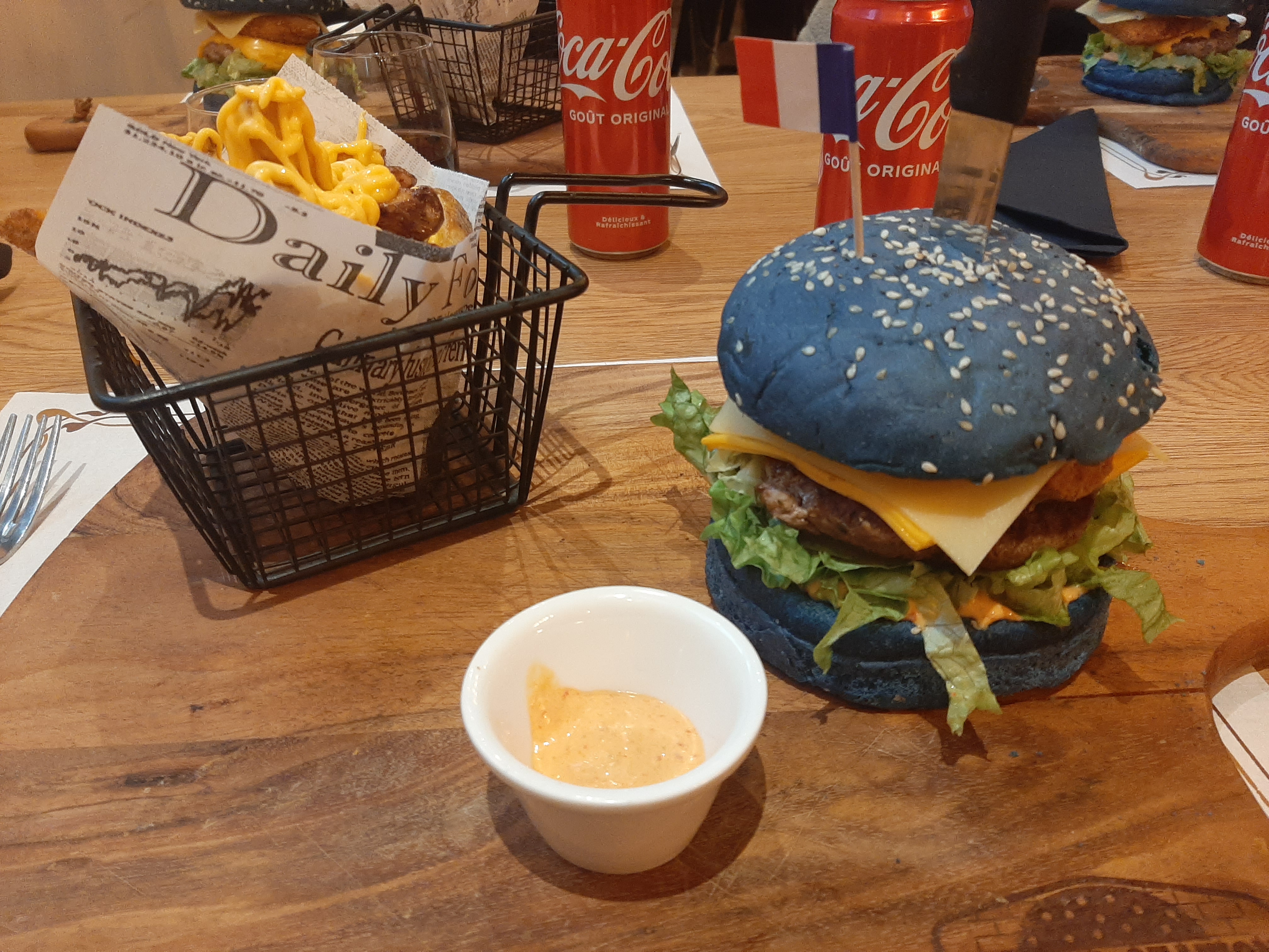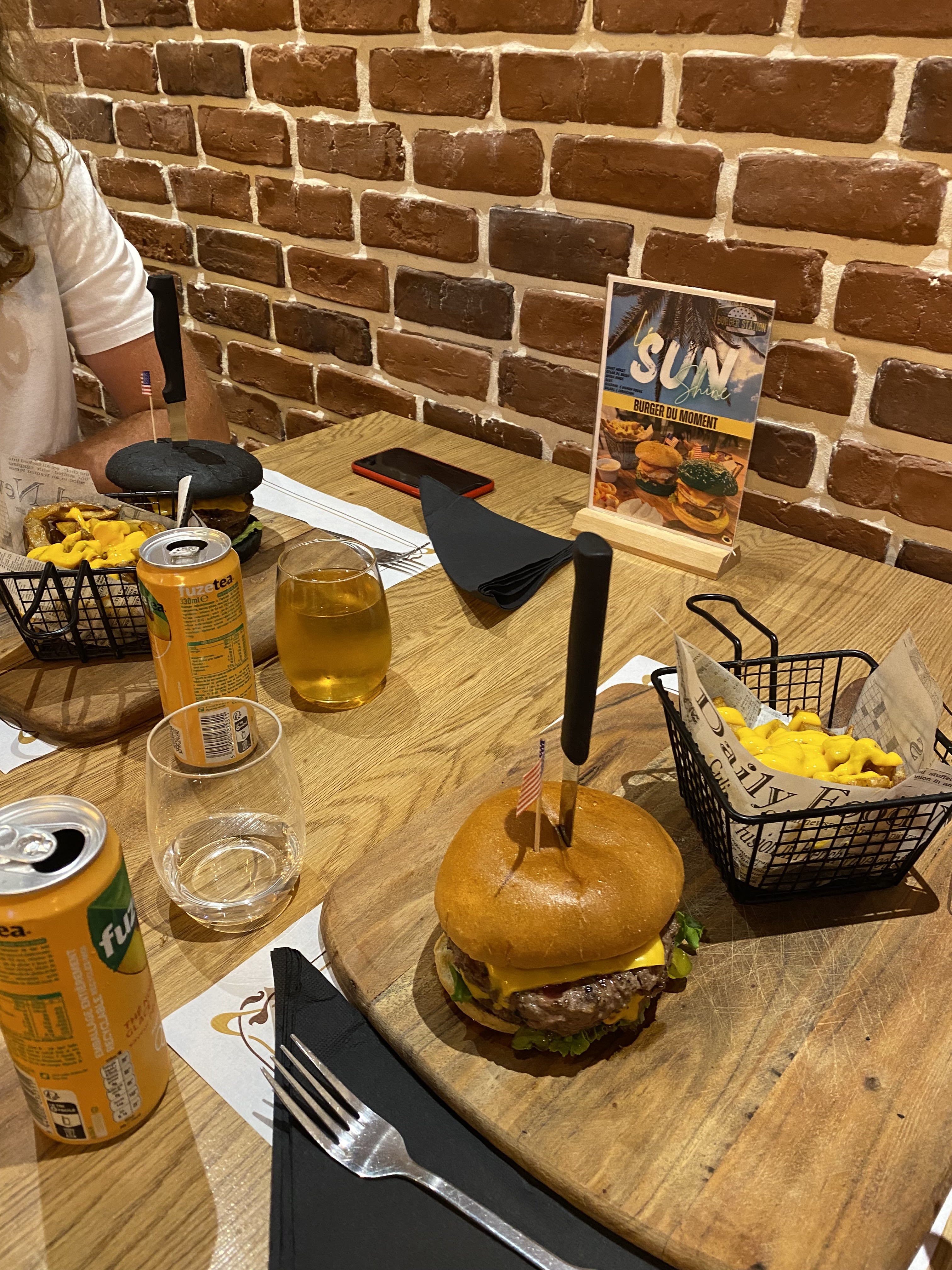 Burger très savoureux, frites au cheddar très bonnes, assiettes copieuses mais on ne sent pas lourd en sortant. C’était délicieux !