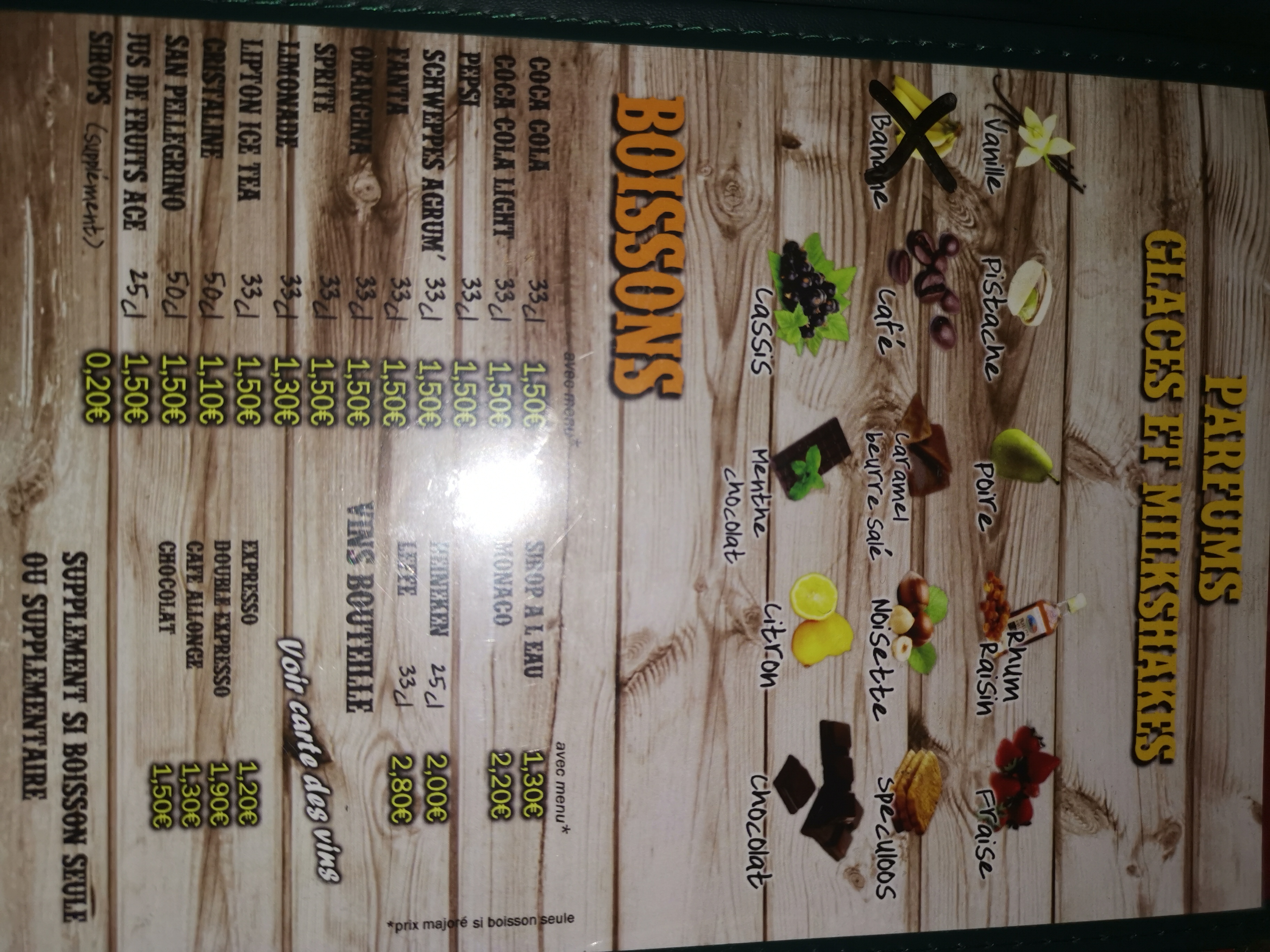 Je constate à chaque fois qu’on commande du Milkshake et que c’est la vieille dame qui sert, elle met toujours moitié du verre : 2 milkshakes meme parfum à moitié plein et 1 autre d’un autre parfum à 3/4 plein. Elle m’agace énormément. J’ai l’impression de me faire arnaquer. Bon je n’y reviens plus