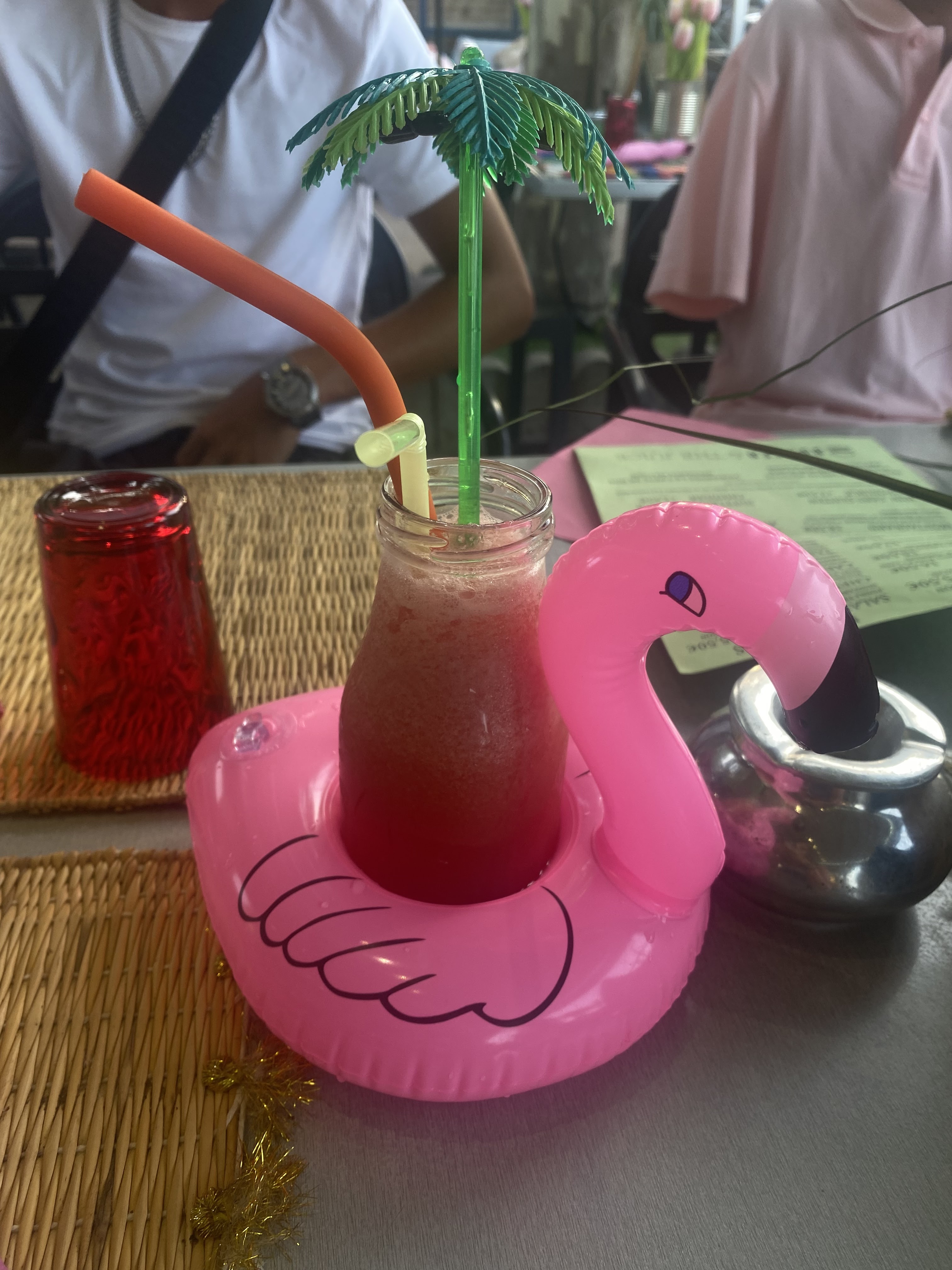 Serveur et serveuse sympa. Jus de fruits trop bon