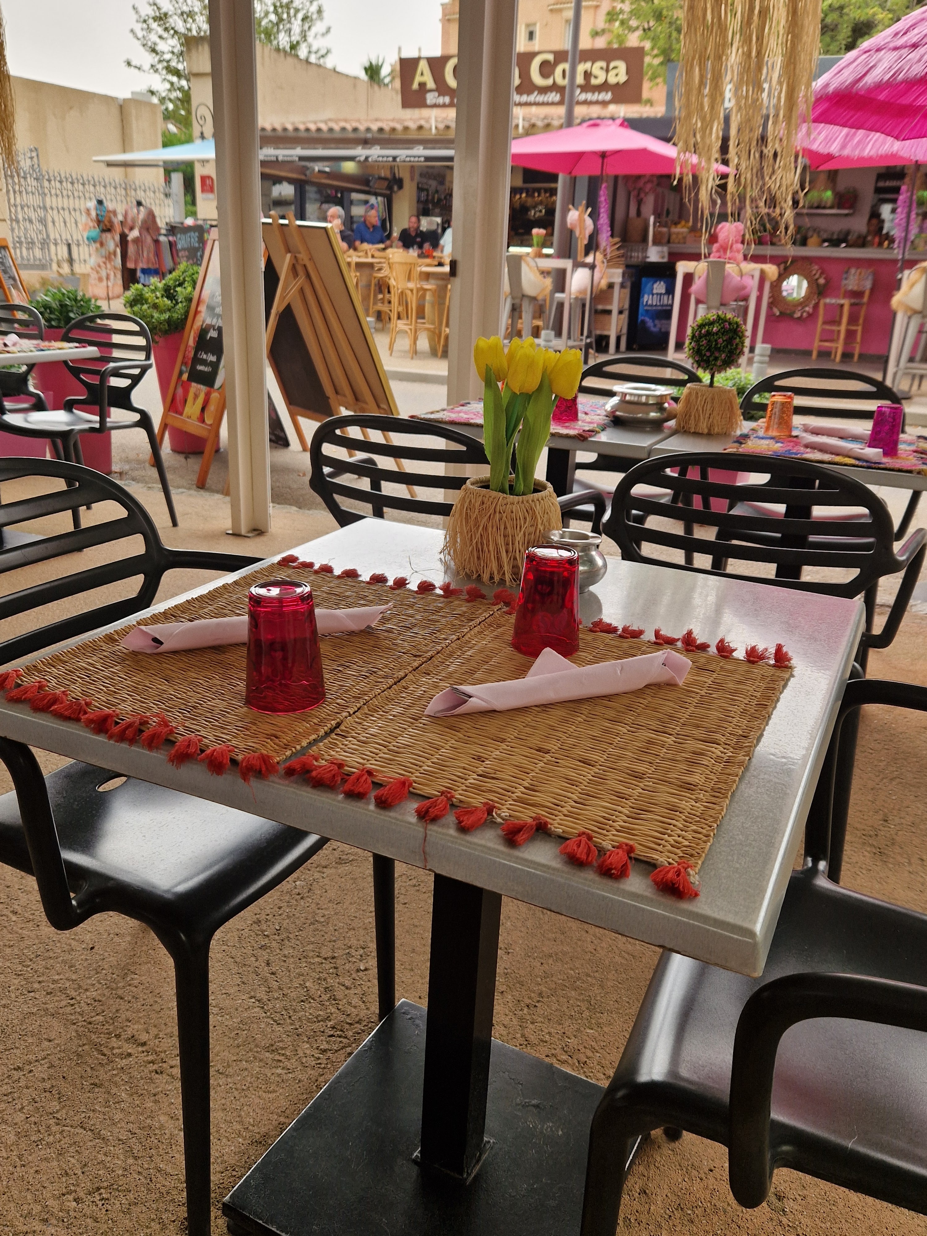 Lieu personnalisé sur la place principale. Une serveuse ( pas Corse ) adorable, pro , joyeuse , et oui car malheureusement on constate que lorsque l’on a un très bon accueil ce ne sont jamais des Corses …. A méditer ! et des burgers de qualité a environ 17€ et du sans gluten. Même à 15 h nous avons été servi .