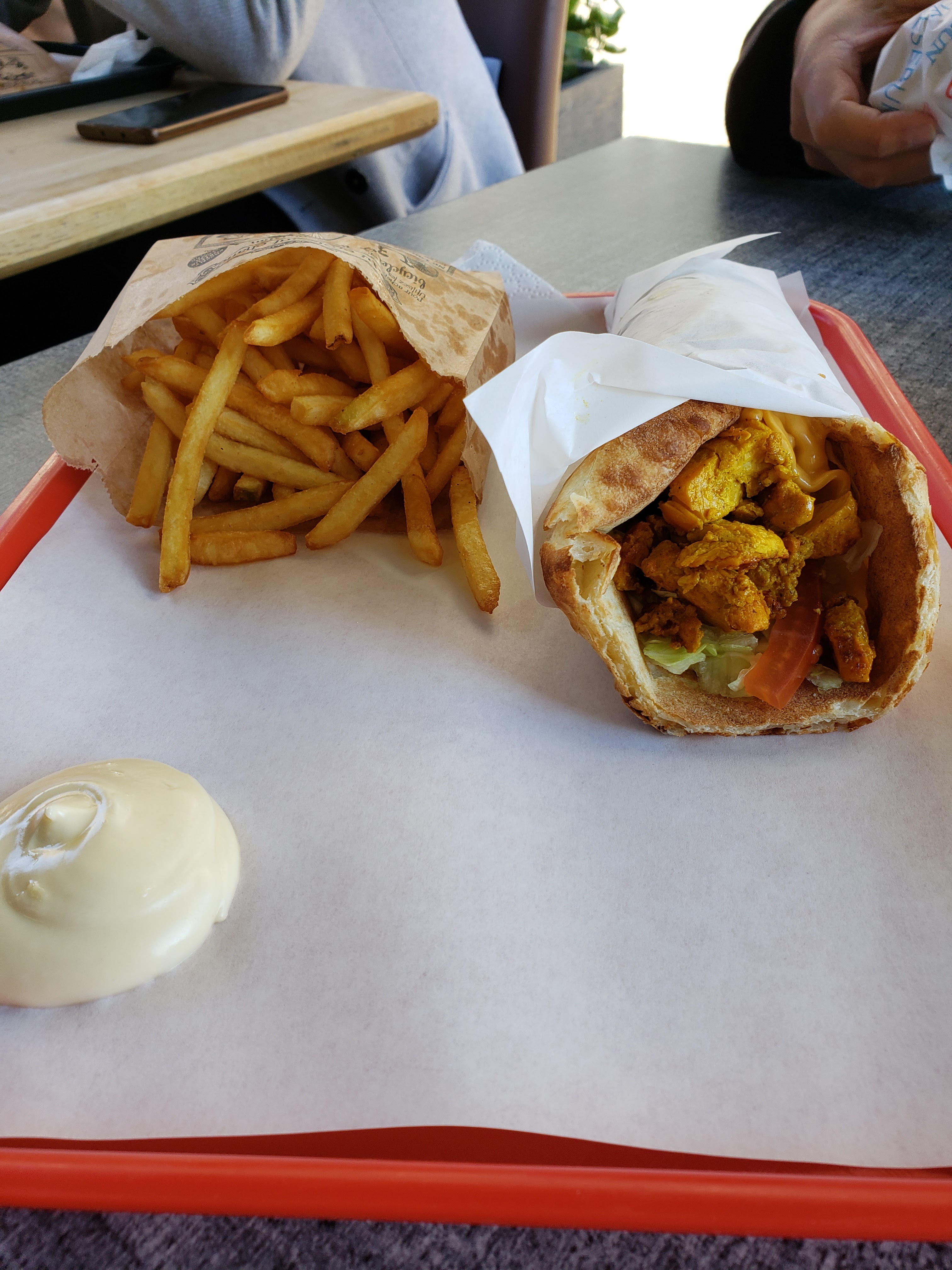 Il était 14h et tous les restaurants étaient fermés, nous avons eu de la chance de trouver BurgerTime ! J'ai eu un très bon poulet au curry roulé dans un délicieux pain Naan moelleux avec les meilleures frites ! Un bon plan avec une boisson à 7,50€