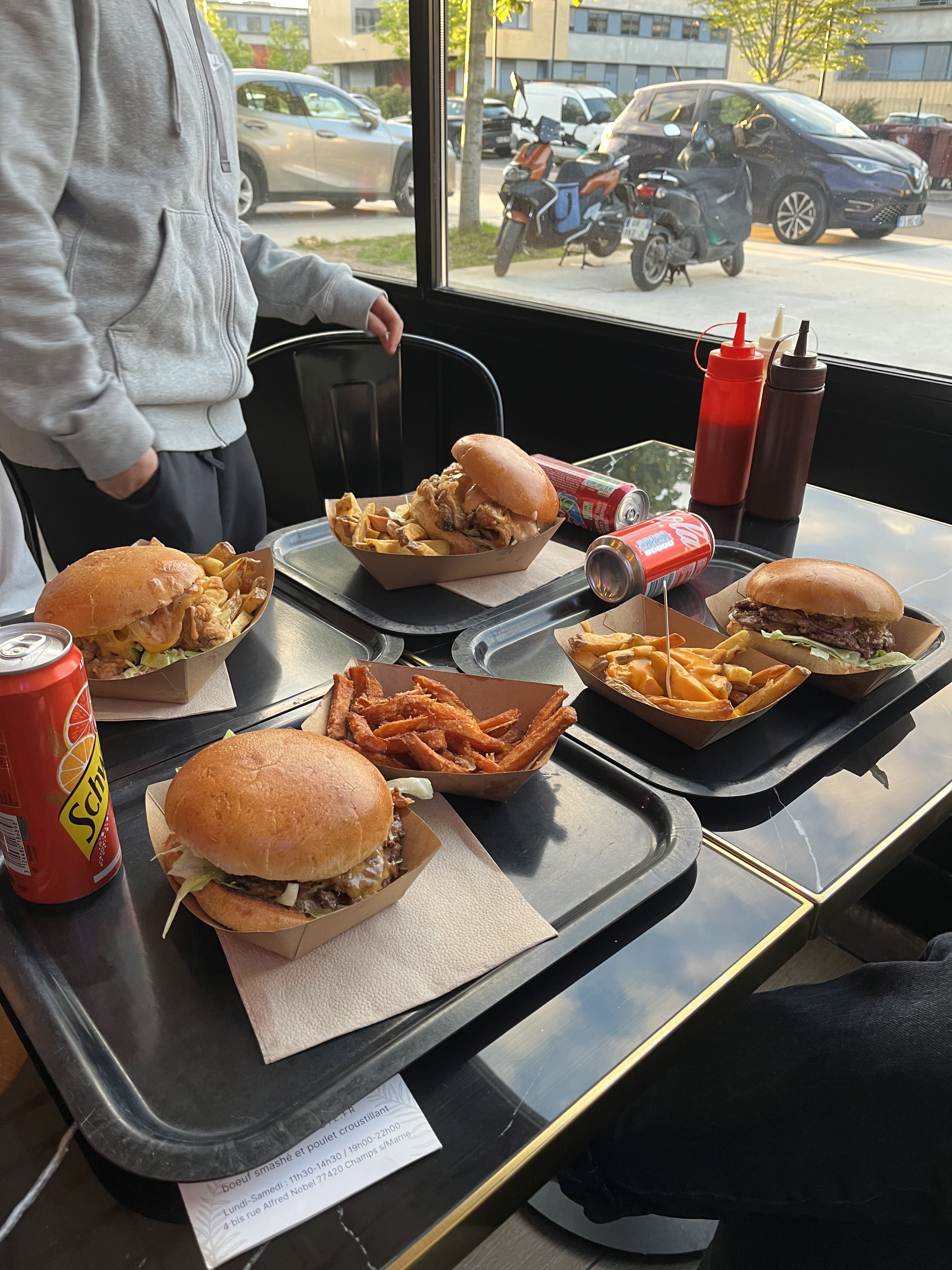 Le burger classique (viande hachée de bœuf) est très semblable au cheeseburger de chez Shake Shack, pour nous qui allons souvent à Dubai c’était très triste de ne pas trouver en région parisienne de burgers qui soient aussi bons que ceux des enseignes Shake Shack et Salt pour ceux qui connaissent : et bien maintenant nous avons trouvé et sommes ravis !! En revanche, les frites classiques ne sont pas tops, bcp de petits morceaux de frites tous secs, c’est dommage de ne pas avoir une belle portion de frite homogène. Déçus également par les tiramisus (nous avons goûté pistache et nutella) le biscuit est complètement ramolli ce qui donne un goût assez industriel… Même s’il y a ces deux points négatifs je n’enlève pas d’étoile car les frites et les tiramisu ne sont pas la spécialité du restaurant, alors que les burgers si, et clairement là il y a du niveau !